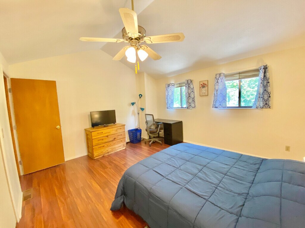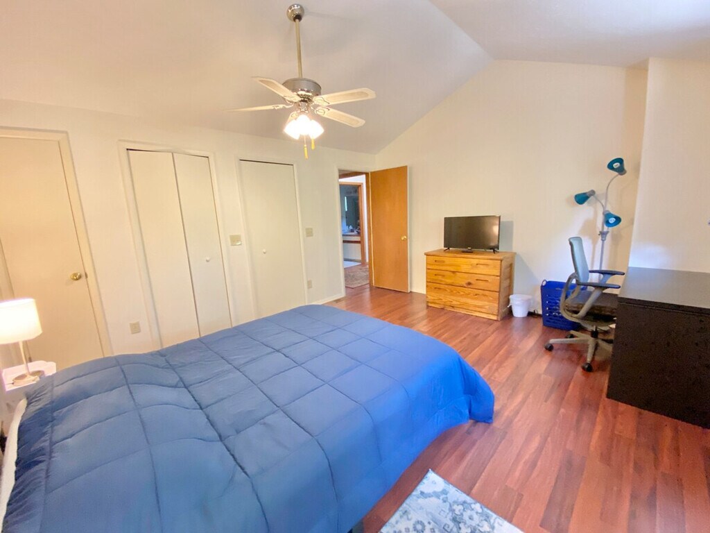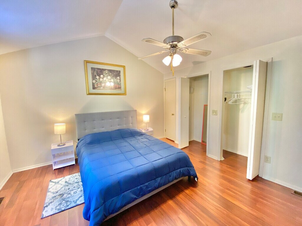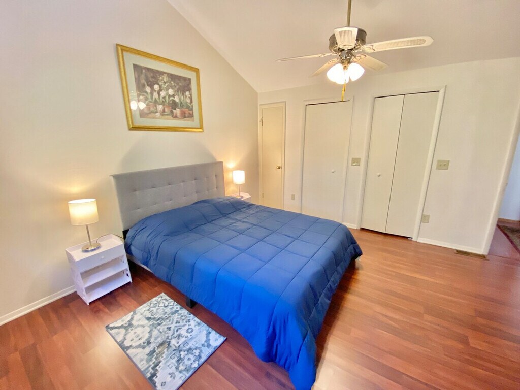 Welcome to this inviting 3-bedroom, 1.5-bathroom condo located off Mayfield Road in Cleveland Heights. Nestled on a tree-lined street, this pet-friendly condo offers a serene environment with hardwood floors throughout and friendly neighbors. Feel at home with fast Wi-Fi, a fully stocked kitchen, and free parking for up to 3 cars. The condo features a spacious living room with a futon and love seat, and a dining area that seats 4 to 6 people, connecting seamlessly to the kitchen. The living room is equipped with a large Smart TV ready for streaming your favorite shows. The kitchen is fully stocked with all necessary appliances, including a dishwasher, electric stove, fridge, oven, microwave, toaster, Keurig coffee maker, and tea kettle. The first floor hosts a half bathroom and a washer/dryer for your convenience. Upstairs, each of the three bedrooms is furnished with a work area, including a desk, chair, and desk lamp. The master bedroom features a queen bed and a Smart TV with ROKU hookup, while the other two bedrooms are equipped with a full and a single bed respectively. The full bathroom offers a shower/tub combo. Guests can enjoy a variety of a la carte services to enhance their stay, including private chef services, hospital amenities, car transportation, and car charging stations. Parking is available in the garage or in the guest parking area, with a limit of 3 cars. Pets are welcome, with the number of pets negotiable. The cleaning fee is also negotiable, based on the number of occupants, length of stay, and number of pets. This condo is ideally situated for easy access to Cleveland's key attractions. You're just a short drive from grocery stores, Whole Foods, the Cedar Lee Independent movie theater, and the Cleveland Heights Public Library. Explore nearby Little Italy, Coventry main street with its array of restaurants and shops, and enjoy the local breweries. The condo is also conveniently located near Case Western Reserve University, University Circle, and Downtown Cleveland, making it a perfect base for both short and long-term stays. Guests booking a stay between 30-59 days will have a $400 monthly utility cap on water, sewer, trash, electric, and gas. Exceeding this cap by more than $25 will require reimbursement. For stays of 60 days or more, guests are responsible for utility usage, except for Wi-Fi and security system. The condo is located in a wooded area, and while we ensure thorough cleaning, wildlife such as deer and squirrels are common. In the rare event of seeing a mouse, contact us immediately. The condo features a lockbox on the front door and a keypad in the garage for easy access. Bedrooms are on the second floor, requiring comfort with stairs. Smoking and parties are not permitted, and a penalty may apply for violations. Each bedroom is equipped with a work area, featuring a desk, chair, and desk lamp, making it ideal for remote work. Fast Wi-Fi is available throughout the condo, ensuring a seamless work-from-home experience.