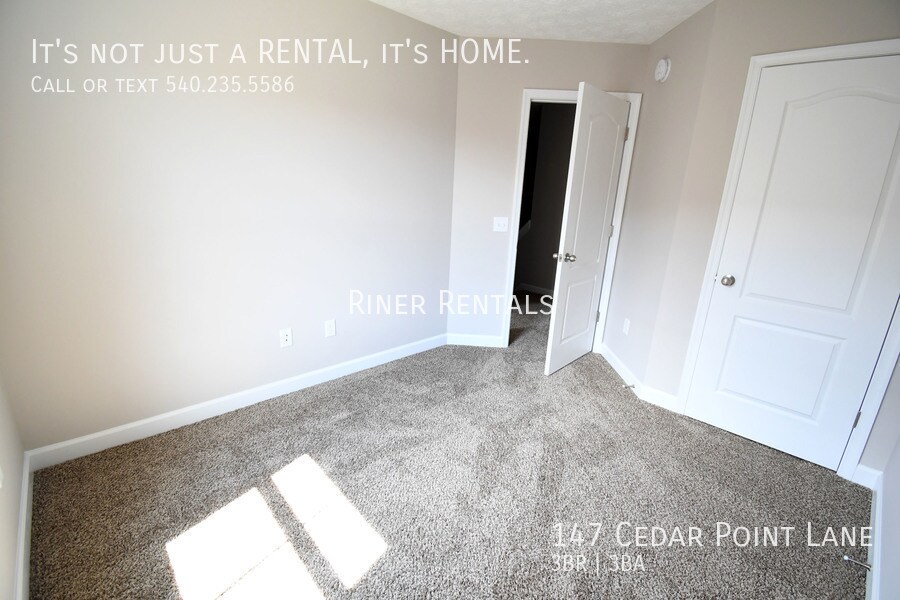 Newer construction townhouse north of Harrisonburg in the Cedar Point Subdivision. The townhome has all stainless steel appliances in the kitchen area, which is a kitchen and diningroom combo. The home is heated and cooled with central heat and air conditioning. the main floor living area is plank flooring, with the stairs and the bedrooms being carpeted. Master Suite and other two bedrooms are located on the upper level of the unit, along with a master bathroom and a hall bathroom. Off of the kitchen area on the bottom level there is a half bath area. The Laundry area is located on the second floor and has a washer and dryer. There are no pets allowed at this unit. If interested please go to Riner and submit a pre-qualification form for each person wanting to be on the lease. Fees for Every Unit: $50-$75 Admin Fee per tenant $50-$100 lock fee per tenant Fees that may apply based on your unit or specifications: $250 non-refundable pet deposit if property allows pets $25-$50 monthly pet rent if property allows pets $300 annual trash fee for WestPort Village Apartments $50 monthly parking rent at Denton Center Apartments Blinds Carpet Flooring Ceiling Fan Central Heat/Air Disposal Heat Pump Ice Maker Lazy Susan Limit 2 Cars Only No Pets Permitted Outdoor Parking Oven Parking Permit Required Stove Unfurnished Vinyl Flooring Washer/Dryer