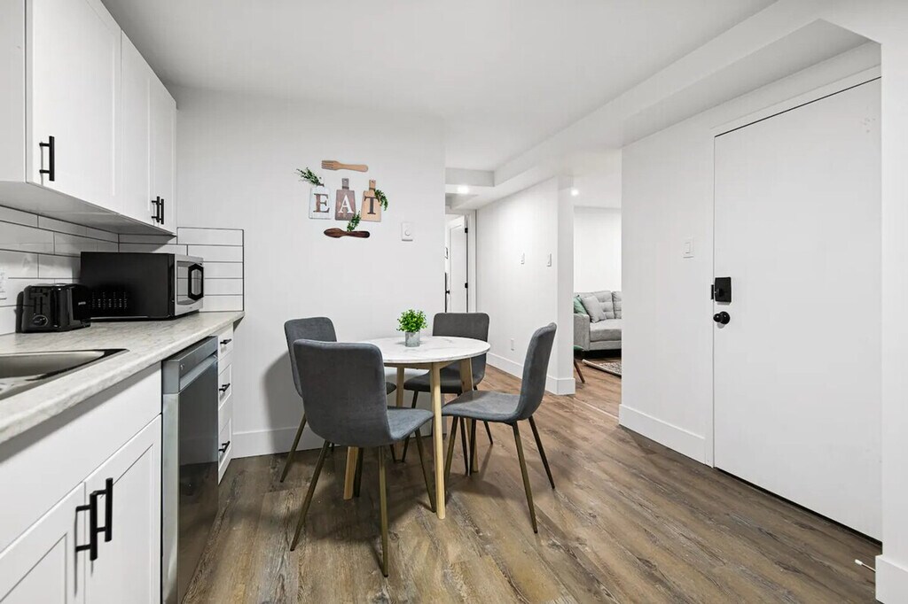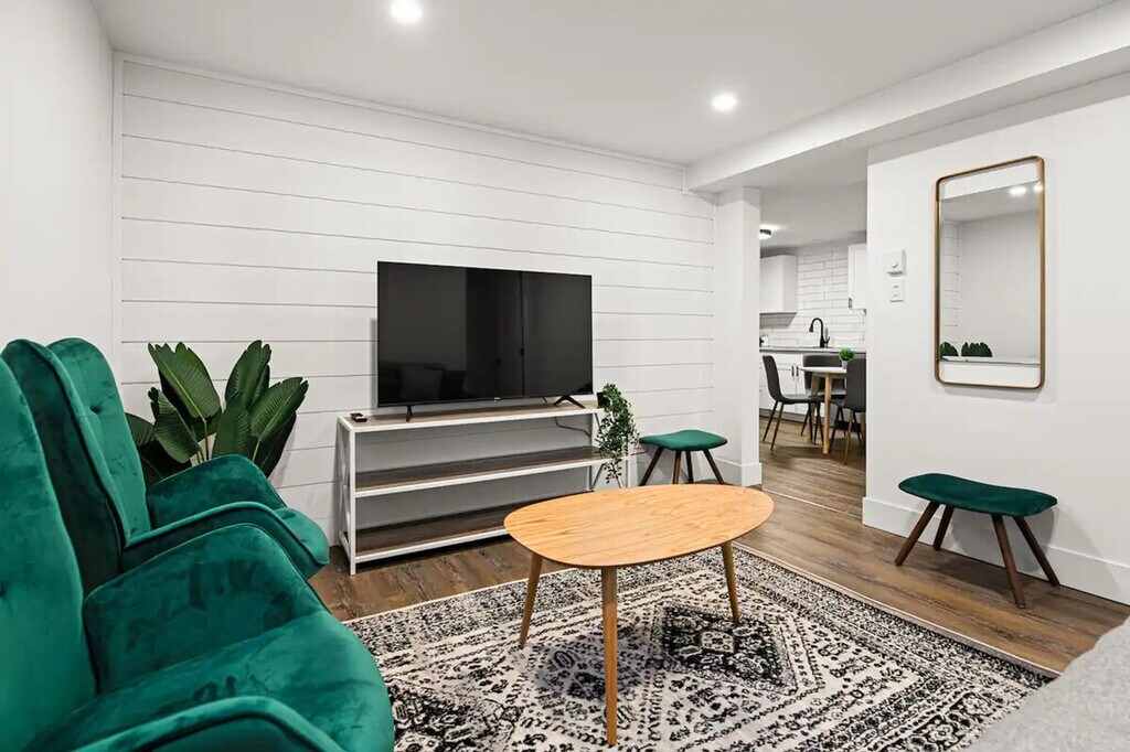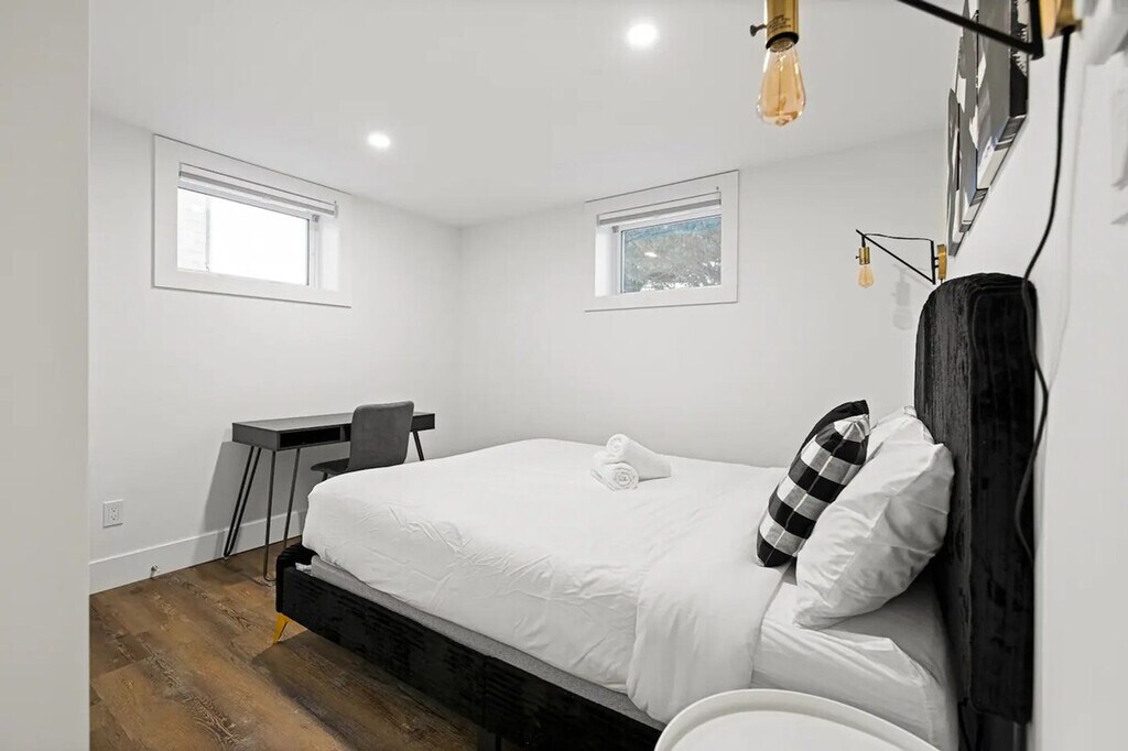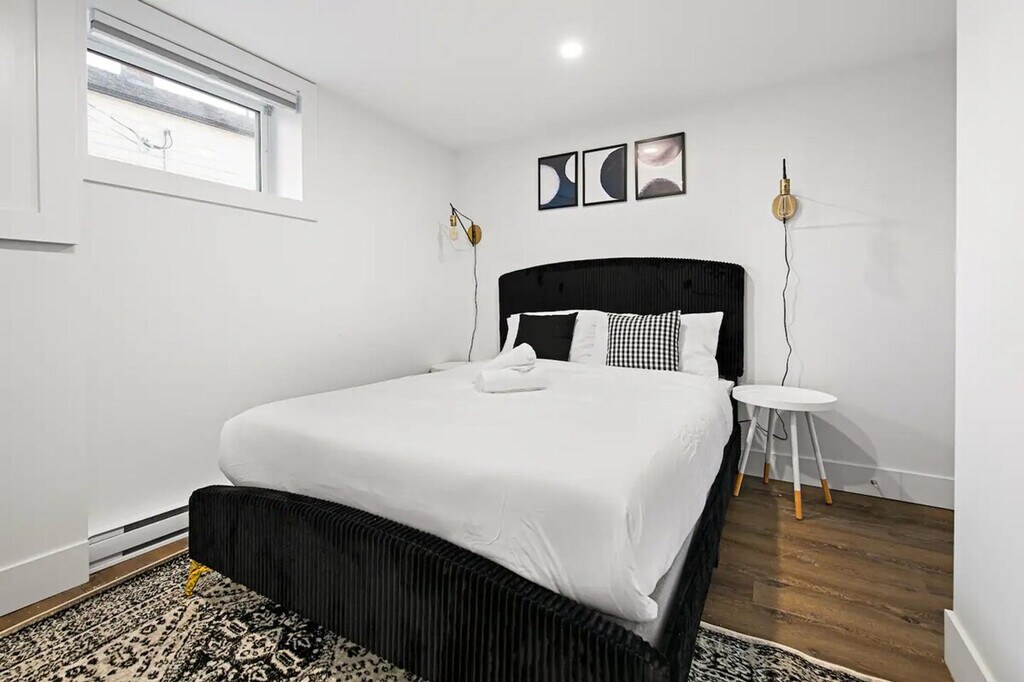 Welcome to this centrally located 2-bedroom basement suite in Dieppe! Feel at home in this suite that is a 5-minute walk to the Champlain Place Mall and a 10-minute walk to the Dieppe Farmer's Market. This home features high-speed Wi-Fi, a 55-inch smart TV, and a fully stocked kitchen with a 4-seater dining table, including kitchen appliances such as a microwave, oven, kettle, coffee maker, cooking and eating utensils. Tower fans and baseboard heaters are provided for guests who require additional cooling or heat in the bedrooms. Parking is available with one slot. The Greater Moncton Airport is a 10-minute drive (7km) away. The Champlain Place Mall is a central public transportation hub, and buses can take you to Université de Moncton or NBCC in 10 minutes. This is the lower unit of a house. While the walls and ceilings have been sound-proofed, there is some potential for noise from the other units, including running water, footsteps, and some talking. The driveway and laundry are shared with the upper unit tenant. The laundry is located in the basement. The partner will be onsite for outdoor property maintenance, including snow clearing and general groundskeeping. Limited quantities of basic items are provided to get your stay started, including toilet paper, paper towels, soap, salt and pepper, sugar, tea, and coffee. One bath towel per registered guest is provided. Includes one workstation. Self-check-in is available using a smart lock. [SI]