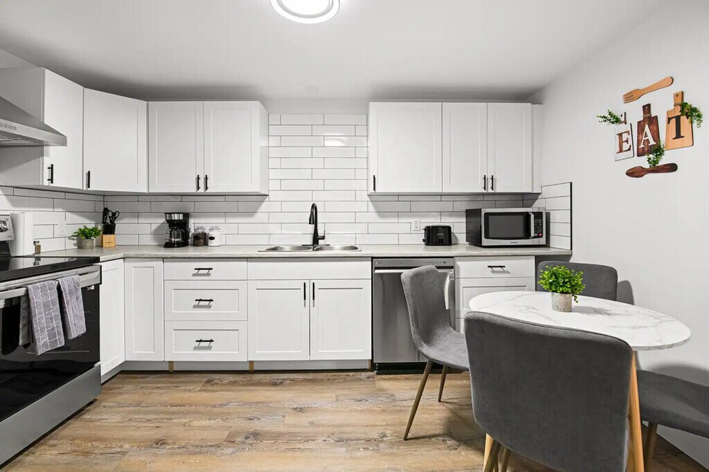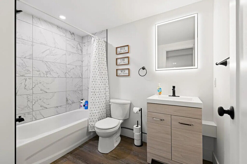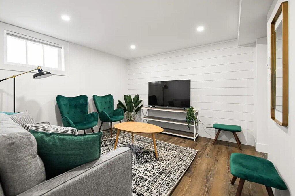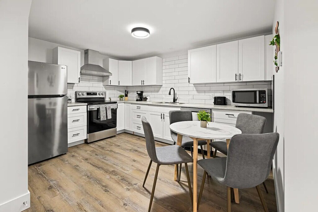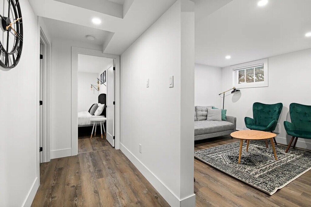 Welcome to this centrally located 2-bedroom basement suite in Dieppe! Feel at home in this suite that is a 5-minute walk to the Champlain Place Mall and a 10-minute walk to the Dieppe Farmer's Market. This home features high-speed Wi-Fi, a 55-inch smart TV, and a fully stocked kitchen with a 4-seater dining table, including kitchen appliances such as a microwave, oven, kettle, coffee maker, cooking and eating utensils. Tower fans and baseboard heaters are provided for guests who require additional cooling or heat in the bedrooms. Parking is available with one slot. The Greater Moncton Airport is a 10-minute drive (7km) away. The Champlain Place Mall is a central public transportation hub, and buses can take you to Université de Moncton or NBCC in 10 minutes. This is the lower unit of a house. While the walls and ceilings have been sound-proofed, there is some potential for noise from the other units, including running water, footsteps, and some talking. The driveway and laundry are shared with the upper unit tenant. The laundry is located in the basement. The partner will be onsite for outdoor property maintenance, including snow clearing and general groundskeeping. Limited quantities of basic items are provided to get your stay started, including toilet paper, paper towels, soap, salt and pepper, sugar, tea, and coffee. One bath towel per registered guest is provided. Includes one workstation. Self-check-in is available using a smart lock. [SI]