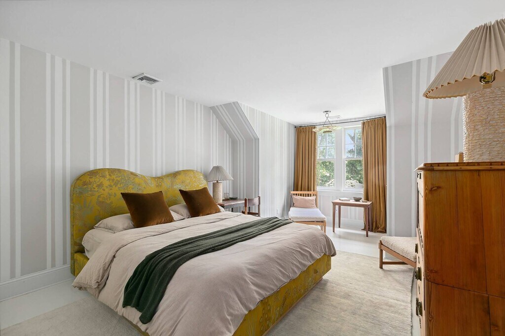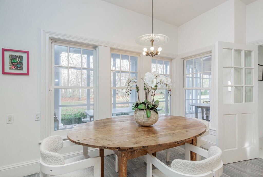 147 Wainscott Harbor Road presents a stunning retreat designed by the acclaimed architect Robert A.M. Stern. This renovated home, situated on 2.8+/- acres, spans 3,600 SF+/- and offers five bedrooms, three full bathrooms, and one half bath. Its prime location provides effortless access to Bridgehampton, East Hampton, Sag Harbor Villages, and the area's picturesque ocean beaches. Every detail of the home has been crafted for both comfort and style. The first level features inviting spaces for seamless entertaining, including a gracious dining room and a living room anchored by a cozy fireplace. Both rooms open to an expansive screened-in porch with ample seating for relaxing or gathering with guests. The eat-in kitchen is a chef's dream, outfitted with top-of-the-line Viking appliances, a central island, and a sunny breakfast area. The first-floor primary suite is a serene retreat, bathed in natural light from oversized windows. The spa-like primary bathroom includes dual vanities, a freestanding soaking tub, and a separate glass-enclosed shower. Upstairs, four additional bedrooms, two full baths and a bonus space offer beautifully designed interiors and flexible living options. The sprawling grounds include lush, manicured lawns, a large heated gunite pool and spa and a DecoTurf all-weather tennis court. 147 Wainscott Harbor Road nestled in near Sagaponack North is the epitome of refined Hamptons living, blending thoughtfully designed interiors and exceptional outdoor amenities in a premier location. Rental Terms: September: $40,000 October: $30,000