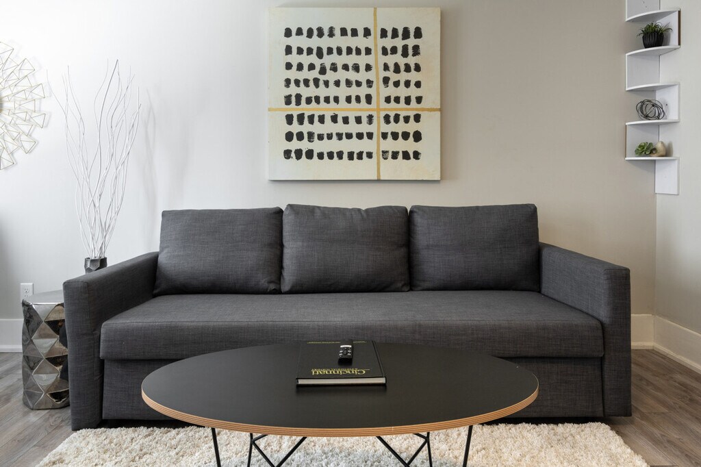 This cozy loft with an open floor plan is just steps away from Over the Rhine's vibrant entertainment district. Enjoy the convenience of being within walking distance to restaurants, bars, cafes, parks, and boutiques, while still enjoying peace and quiet at night. The apartment features a pull-out sofa and a queen bed, accommodating up to four guests. A convenient garage is located a 4-minute walk away for easy check-in. The apartment offers a comfortable living space with a pull-out sofa and a queen bed, perfect for accommodating up to four guests. The open floor plan enhances the sense of space and comfort. Parking is available a 2-minute walk away in Ziegler Garage, making it easy to explore the area on foot, by bike, or using scooters and Uber. The nearby streetcar stop offers a convenient loop through downtown and Over the Rhine. Located in the heart of Over the Rhine, the apartment is surrounded by Cincinnati's best bars, restaurants, cafes, parks, and even two breweries within walking distance. It's also close to Music Hall and venues for the Opera, Ballet, and Symphony. For sports enthusiasts, the Great American Ballpark is just over a mile away, easily accessible by foot or the nearby Streetcar. The neighborhood is one of the country's largest intact historic areas, boasting charming Italianate architecture. Quiet hours are from 9:30pm to 8am. Parties and amplified music are strictly forbidden without advance written consent. Unauthorized parties may result in prosecution for criminal trespassing under Ohio Revised Code and Cincinnati municipal code. Smoking and open flames are not allowed, and violations may result in a $300 cleaning fee. Additional fees may apply for excessive pet hair, stains, or unreturned keys. Dishonest or abusive behavior may lead to reservation termination without refund. A laptop computer is not included. [SI]