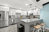 Welcome to this beautifully renovated 3-bedroom,2-bathroom corner-lot home with an oversized 2-car garage,ideally located just minutes from vibrant Downtown Dunedin. This prime location offers exceptional convenience—only 1.5 miles from TD Ballpark (Blue Jays Spring Training),a quick 1-mile bike ride to the scenic Pinellas Trail,and close proximity to top-rated beaches,shopping,restaurants,and airports. For a seasonal retreat,this home combines charm,functionality,and modern comfort From the moment you arrive,you’ll be drawn to the home's impressive curb appeal,enhanced by a newer roof (2020) and fully owned solar panels (2021) that help keep electric bills remarkably low. A welcoming front patio invites you to relax and enjoy the Florida lifestyle. Inside,the home features a stunning open-concept layout with vaulted ceilings,exposed wood beams,and oversized windows that flood the living area with natural light. The kitchen is truly a showstopper,outfitted with soft-close shaker cabinets,high-level granite countertops,a sleek glass backsplash,and Samsung stainless steel appliances (2020). A large center peninsula doubles as a breakfast bar and makes an ideal space for meal prep and entertaining. The adjoining dining area completes the open and inviting living space. The smart split-bedroom floor plan provides both privacy and practicality. The spacious primary suite includes a large walk-in closet and a spa-like ensuite bathroom featuring dual vanities and a luxurious rainfall shower. Two generously sized guest bedrooms share an updated guest bathroom with a double vanity. A separate indoor laundry room adds extra convenience to everyday living. Additional features include energy-efficient double-pane windows,newer vinyl fencing surrounding the property,upgraded two-panel interior doors,and luxury vinyl flooring and interior paint throughout. The backyard offers a fun playground area with plenty of room to run around and play ball. With no HOA and no mandatory flood insurance required,this home offers peace of mind and low-maintenance living in one of Dunedin’s most desirable areas Landlord is offering a 3-6 month rental for all visitors checking out beautiful Florida life.