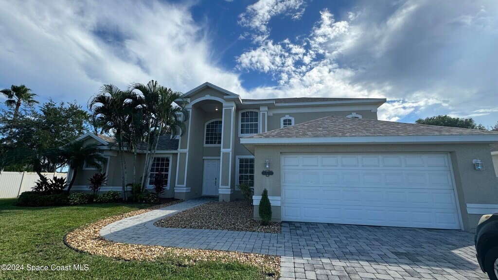 Welcome to this stunning 5-bedroom,3.5-bathroom home located in the desirable gated Tamarind Estates community in Melbourne,FL. This 2-story single family home features a downstairs master bedroom and bathroom,perfect for convenience and privacy. The spacious kitchen boasts stainless steel appliances and upgraded finishes,while the separate dining and living rooms provide ample space for entertaining. Enjoy the luxury of tile flooring throughout and carpet in bedrooms for comfort,as well as a master bathroom with double sink,and a separate shower and garden tub. With an inside separate laundry room,paver driveway,fenced backyard,and enclosed pool,this home offers everything you need for comfortable and stylish living. Make an appointment today to view this awesome property!
