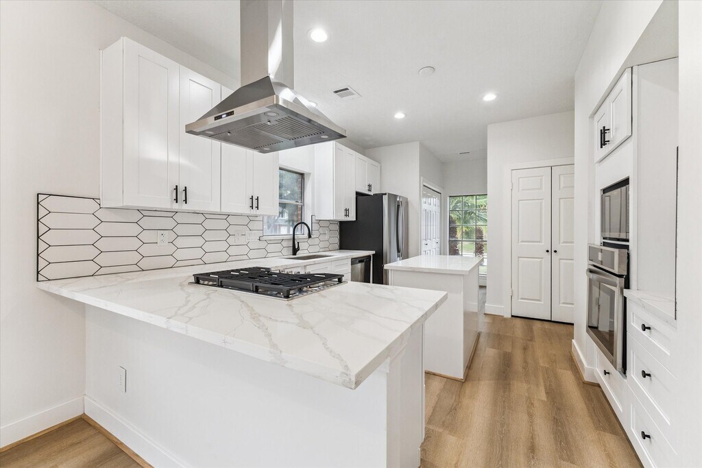 Beautifully renovated home in Jamestown Colony with no back neighbors,a private hot tub retreat and classic sunroom! Recent upgrades include a new roof,new HVAC,new plumbing,updated electrical,and foundation repairs with warranty. Inside,enjoy sleek quartz countertops,all-new appliances,and chic contemporary fixtures. Tile and wood flooring grace the main living areas and primary suite,while soft new carpet fills the secondary bedrooms and the upstairs game room. A detached garage and extended driveway round out the package. Conveniently located near shopping,dining,and outdoor recreation with quick access to Highway 6 and US 290. MLS# 73213450