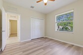 This beautifully maintained home sits on a fully fenced and private 1.5-acre corner lot, complete with a long driveway and gated entry. Inside, you'll find two master suites, two additional bedrooms, a den/office, and 3.5 bathrooms. The bedrooms feature newer NuCore vinyl flooring, while the living areas, kitchen, and bathrooms are finished with ceramic tile throughout. The spacious kitchen offers granite countertops, abundant wood cabinetry, a large pantry, and newer stainless steel appliances. Additional highlights include vaulted and tray ceilings, accordion shutters on all windows, a Roman Jacuzzi tub, a separate shower with dual shower heads, and a laundry tub in the master suite.