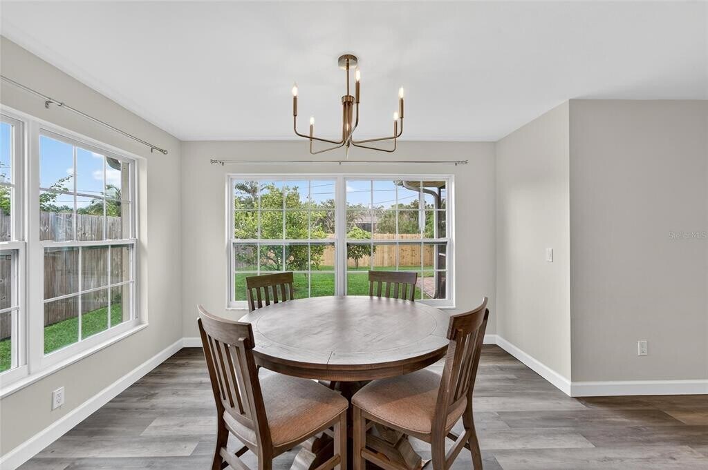 Welcome home to this beautifully renovated 2-bedroom,2-bathroom home with a spacious garage,located on a quiet street just 15 minutes from Clearwater Beach and minutes from charming Downtown Dunedin. Inside,you'll find a bright and open layout featuring a newly remodeled kitchen with a large island offering bar seating,stainless steel appliances,generous cabinet space,and a reverse osmosis water filtration system. The home also includes a water softener for added comfort! Both bathrooms have been tastefully updated,and new luxury vinyl plank flooring runs throughout the home. Energy-efficient windows and sliding glass doors help reduce monthly utility costs while allowing natural light to flow in. The primary suite offers ample closet space with custom organizers,and ceiling fans are installed the the bedrooms for year-round comfort. Step outside to enjoy a spacious screened-in lanai,perfect for relaxing or entertaining. The fully fenced backyard features lush sod and mature fruit trees,offering privacy and tranquility in a garden-like setting. This move-in-ready home is a perfect combination of style,comfort,and location. Small dog allowed with $30 pet rent and $300 non-refundable pet fee. $50 application fee per adult. $100 admin fee due after approval. Security deposit equal to 1 month's rent. Renter's insurance required. Utilities are paid by tenant. Lawn care and internet is provided by owner. Call,text,or email to schedule your showing! MLS# TB8426496