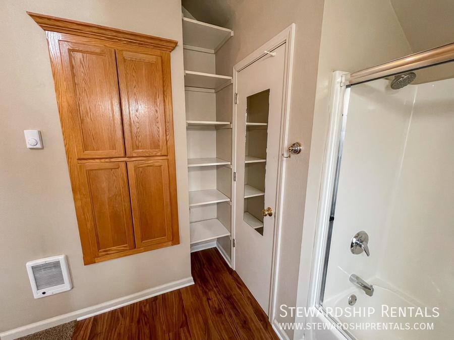 Prime location two blocks south of campus. Features a compact living area with built in couch, all appliances including washer/dryer, and each room has its own full bathroom! Shared yard and 3 free parking spots. $50 monthly utility fee covers water and sewer. Residents are responsible for electric and garbage. *Properties will only be shown to approved applicants* For more information or to apply for FREE, please visit Carpet Close To University Of Oregon Electric Heat House Limited Free Parking Pets Allowed Private Bathroom Vinyl Windows Washer & Dryer In Unit Yard Care Provided