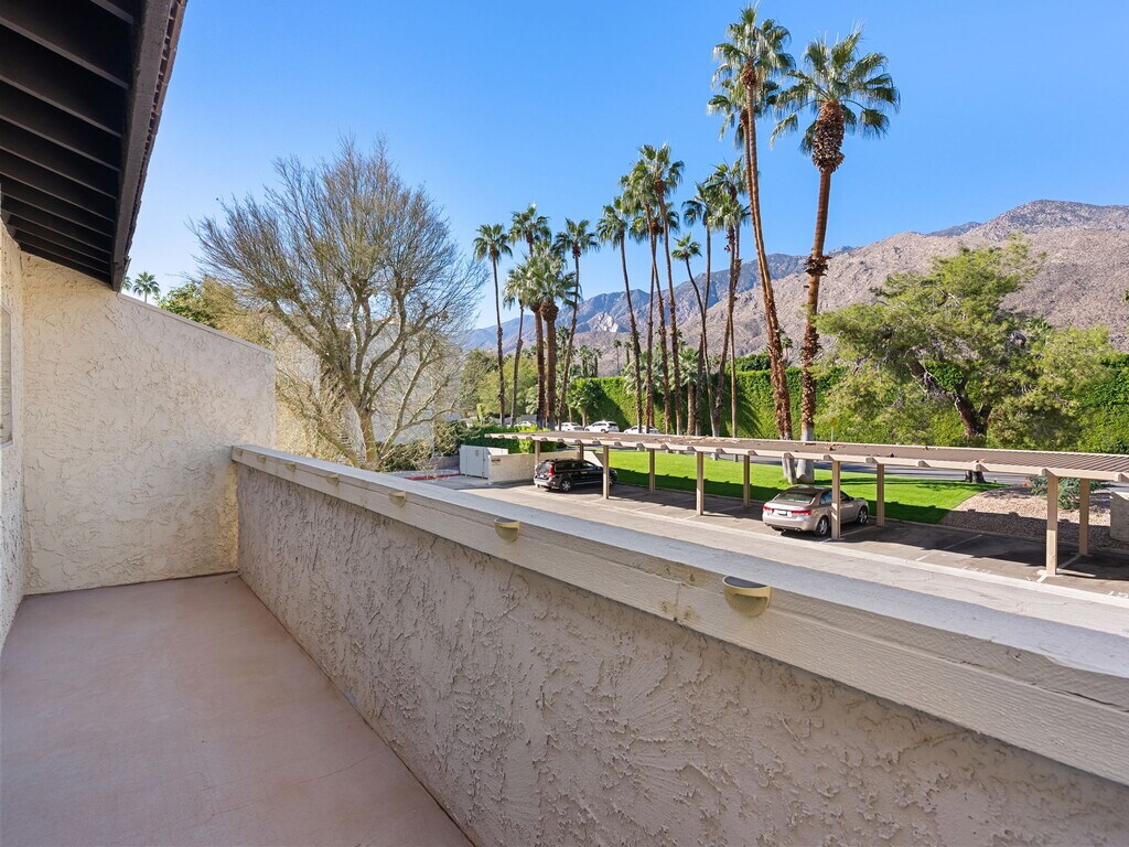 Discover your perfect desert retreat in this charming 1-bedroom, 1-bath condominium located in the sought-after Biltmore Phase II community. This well-maintained home offers an open floor plan with high ceilings, upgraded windows and sliding glass doors, a spacious living room, and a large balcony showcasing breathtaking views of the San Jacinto Mountains. The updated kitchen features sleek quartz countertops, perfect for entertaining or relaxing at home. This condo combines comfort and style in every detail. Enjoy resort-style amenities including sparkling pools, relaxing spas, and community barbecues all set within beautifully maintained grounds. Conveniently located just minutes from downtown Palm Springs, you'll have easy access to top restaurants, shopping, and entertainment. Rental Terms: Annual: $1,950 Per Month