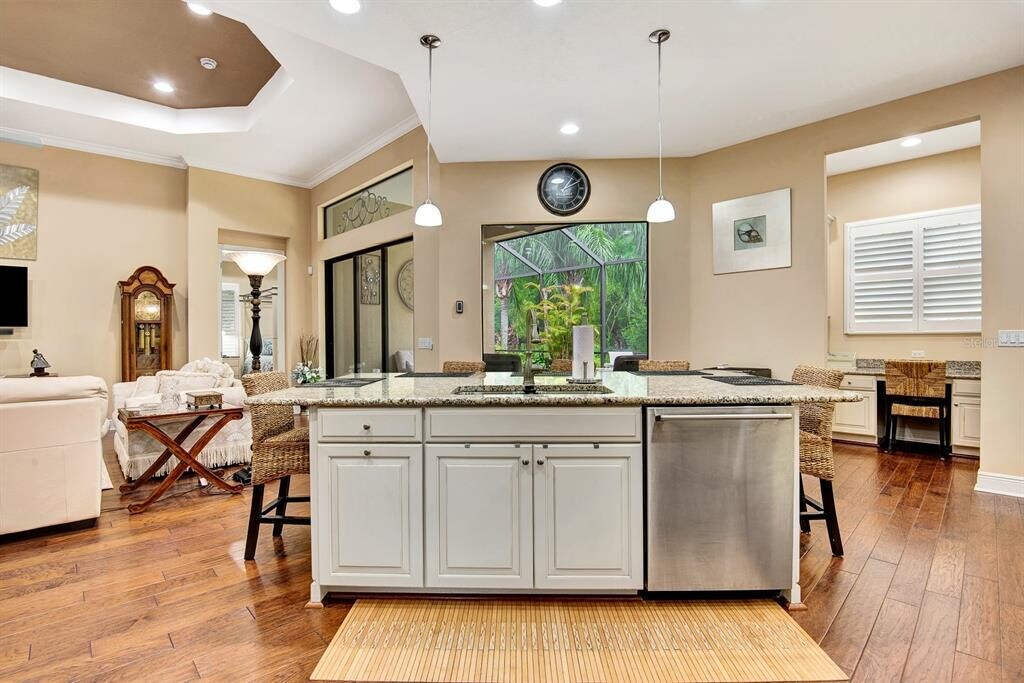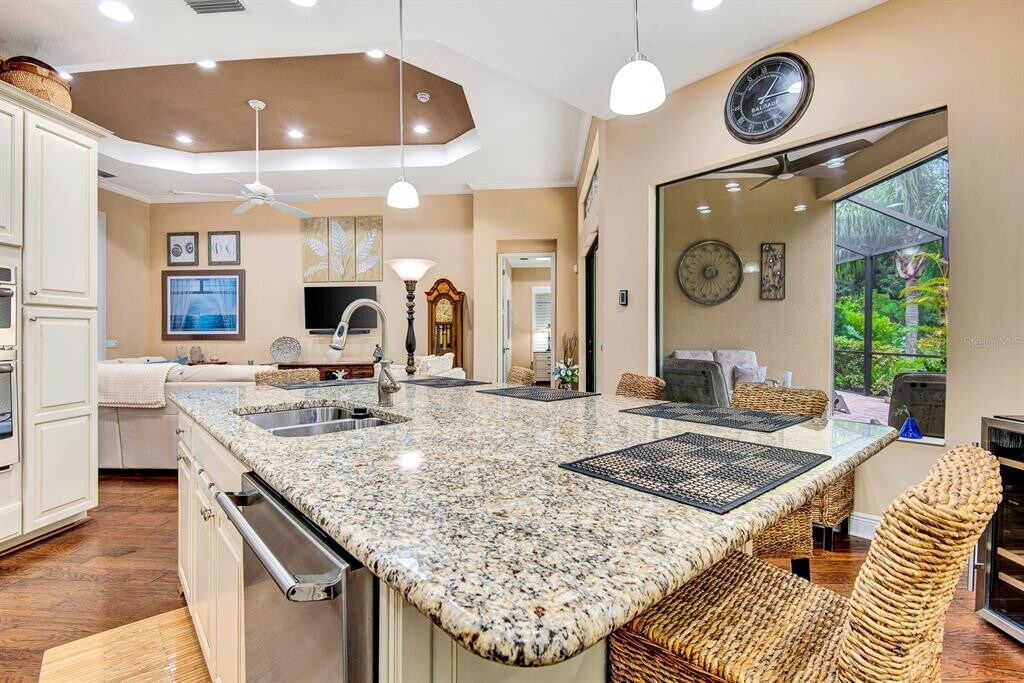 Welcome to Country Club East,where luxury living meets timeless comfort. This beautiful 2,600 sq. ft. home with a 3-car garage,golf cart parking,and an oversized driveway is being offered turn-key furnished. Enjoy privacy on the back patio with serene views of the greenbelt and preserved area. Inside,the home features an open floor plan with crown molding,tray and coffered ceilings,elegant tile and vinyl flooring. The gourmet kitchen is the heart of the home,showcasing stone countertops,an oversized island,soft-close cabinetry,upgraded lighting,and a large walk-in pantry with a built-in coffee station. The spacious owner's suite is complemented by a luxurious bath,while an additional private office/den with double doors provides excellent flexibility. With 3 bedrooms,3 bathrooms,and a dedicated office,this home offers both comfort and functionality. Located near top-rated schools,Lakewood Ranch Main Street,and UTC Town Center,this property combines convenience with elegance. Country Club East is a premier golf community offering three resort-style pools,a clubhouse,and a state-of-the-art fitness center,delivering an upscale lifestyle in the heart of Lakewood Ranch. MLS# A4664444