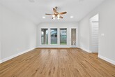 Single-story Perry Homes. Brick/stone elevation with covered entry. Foyer opens to an open-concept kitchen,dining,and family room. The kitchen includes a center island and a walk-in pantry. 4 bedrooms and 3 full baths. Rear primary suite with walk-in closet; primary bath with dual sinks and separate tub/shower. Secondary bedroom wing with shared bath. Utility room,covered patio,and 2-car attached garage. MLS# 89940647