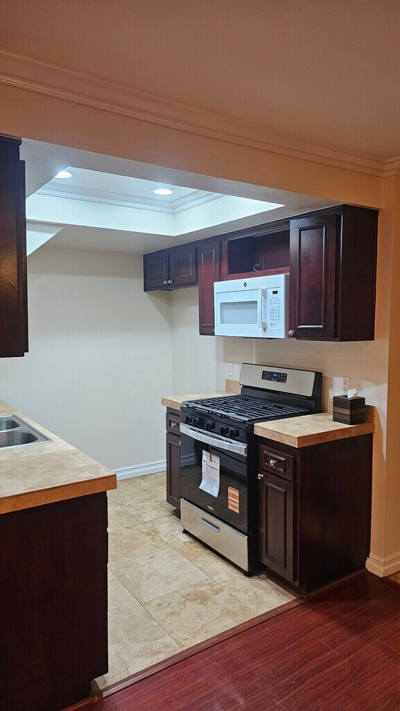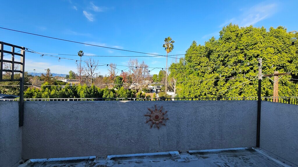 Tri-Level beautiful quiet Townhouse with rooftop patio & views. Rear unit in 28-unit building. 2-car Parking Included. Beautiful, bright, quiet 2 Bedroom, 2.5 Bath (Two master suites), 2 Parking (subterranean tandem parking), balcony and rooftop patio located in Sherman Oaks. Unit has fresh paint, newer laminated flooring throughout stairs and bedroom- laminated flooring downstairs living/dining room, recess lighting, moldings, blinds, newer central air & heat and fireplace. Unit includes dishwasher, microwave, gas range, newer washer & dryer, water hot/cold, gated subterranean tandem parking, and intercom entry. IDEAL FLOOR PLAN-1st Floor: Entry area, kitchen, dining area, living/TV room, fireplace, large balcony, elegant guest bathroom- 2nd Floor: 2 Bedrooms suites with views ideal for sharing- 3rd Floor: Laundry area with rooftop large spacious patio - has BBQ and lounge area to relax with beautiful views (away from street noise). BEST UNIT IN THE COMPLEX! Manicured courtyard and close to main entrance! Easy access to 405 and 101 freeways and walking distance to shops and restaurants! There will be a $500 pet deposit. We prefer to have a commitment of 2 years lease. Owner pays for Water, trash and sewer- Tenant pays for gas and electricity