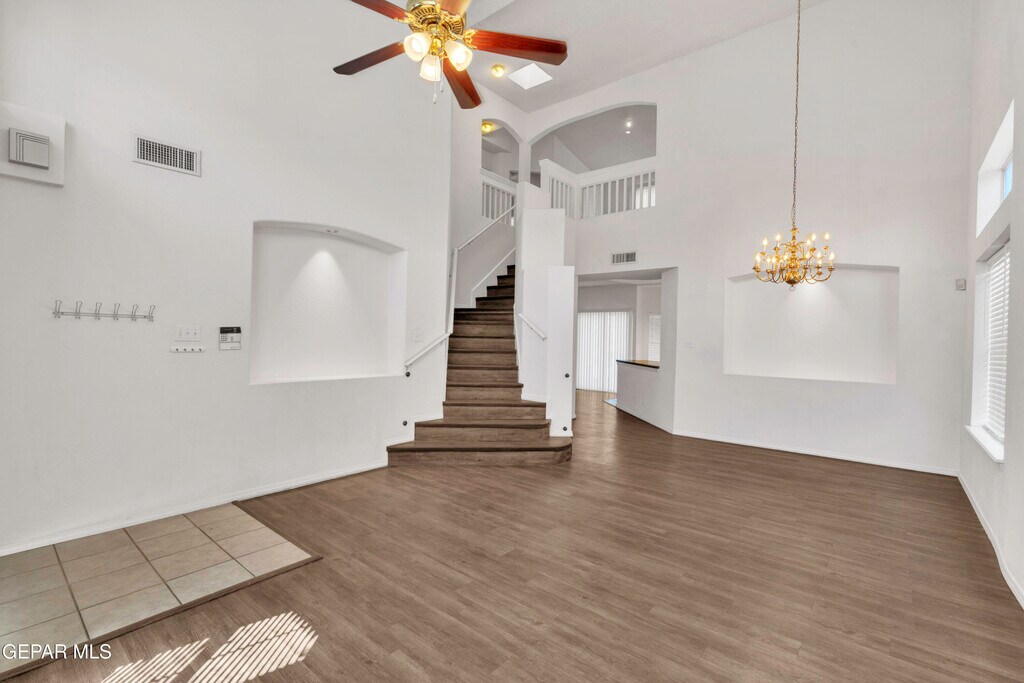 Welcome to the West Hills subdivision in the heart of El Paso's West side. 2086 sq ft with the formal sitting and dining as you come in and the second living area with a fireplace set to the back that is open to the large kitchen. Also downstairs is the laundry room and a half bath. As you come up the stairs there is the loft and balcony along with the primary suite with a walk in bath and closet,two more bedrooms and a full bath,plus no carpet and refrigerated air. This home sits on a large lot with landscaping front and back and located just minutes from parks,schools and shopping