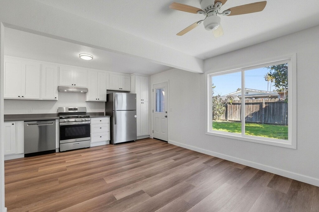Welcome to 1474 Foley Ave, a beautifully updated home in San Jose. This property features 3 bedrooms and 2 full bathrooms, offering ample space for comfortable living. The house has been recently renovated with new paint, giving it a fresh and modern look. The kitchen has been completely redone, featuring new stainless steel appliances. The bathrooms have also been updated, providing a clean and contemporary feel. The house is equipped with ceiling fans for those warm California days, and new LVP floorings that add a touch of elegance to the space.