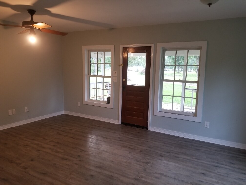 Adorable cottage for lease in Silverhill. Secluded location. Large kitchen with plenty of cabinets, fridge, stove, dishwasher, microwave and a huge storage pantry. Laundry room. Vinyl plank flooring throughout. Covered front porch looks out on pecan orchard and pasture land. Dedicated parking area. Well water and septic sewer included. Yard work included. Baldwin EMC, Baldwin Solid Waste, and Professional Pest Control are tenants' responsibility. Central heating and Air is electric. Available in mid-November. Renter's insurance required. Online application fee is $50 per adult- link provided at showing.