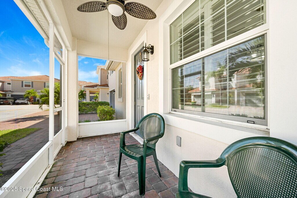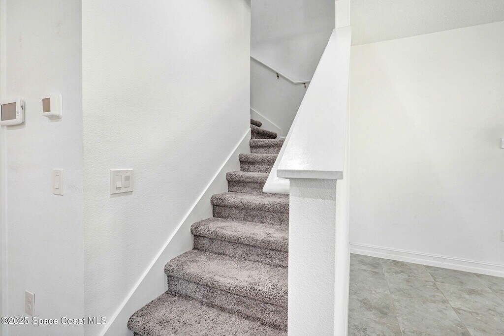 For RENT: Centrally Located Light,bright,and move-in ready! This charming end unit townhome is nestled in the gated community of Riverwalk of Melbourne. Enjoy resort-style living with access to a community pool,spa,sauna,fitness center,playground,clubhouse,and more! Inside,you'll love the open concept layout with TILE flooring downstairs and carpet only upstairs. The updated kitchen features 42'' solid wood cabinets,granite countertops,stainless steel appliances,and a stylish backsplash. Sip your morning coffee on the cozy screened-in porch. Upstairs offers a spacious primary suite with walk-in closet,dual vanities,granite counters,and walk-in shower. Two more bedrooms,a full bath with shower/tub combination,and a laundry closet with stackable washer/dryer complete the space. A 2-car garage and extra storage add convenience. Rent includes water,sewer,trash,internet,basic cable,and landscaping! All just minutes to major employers,EGAD,and beaches. Must see!
