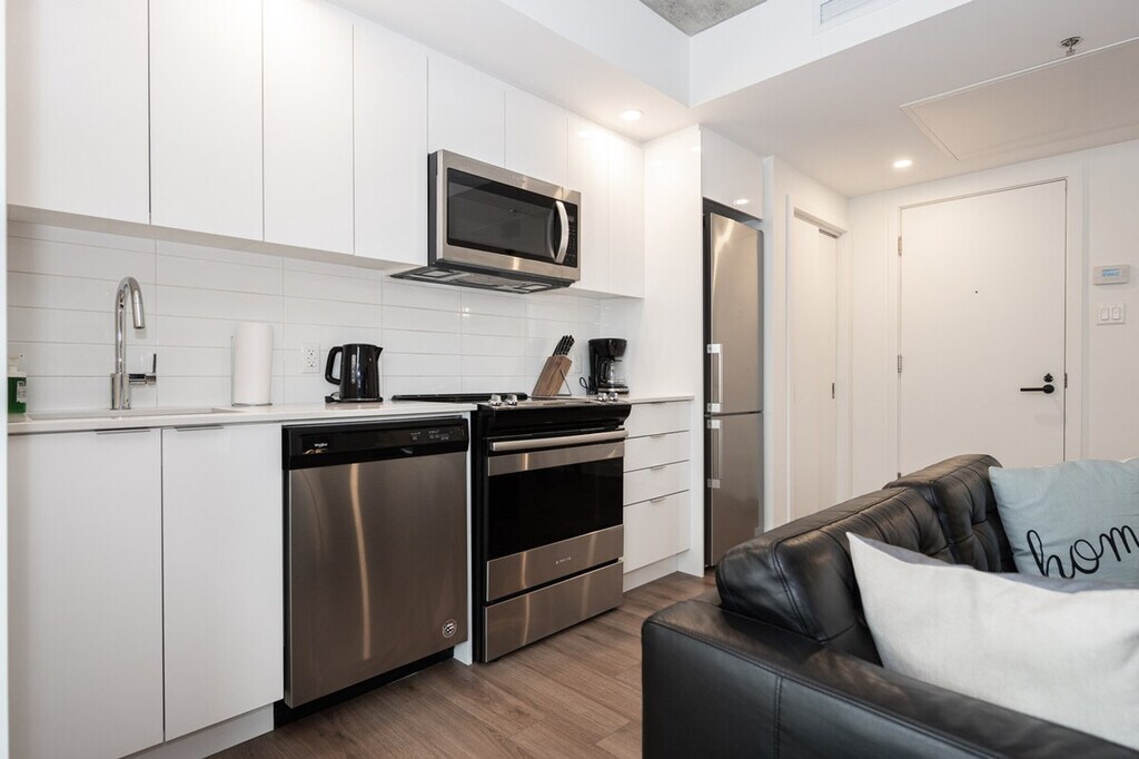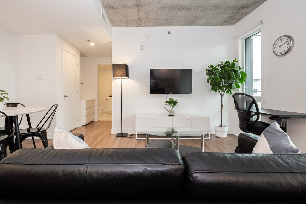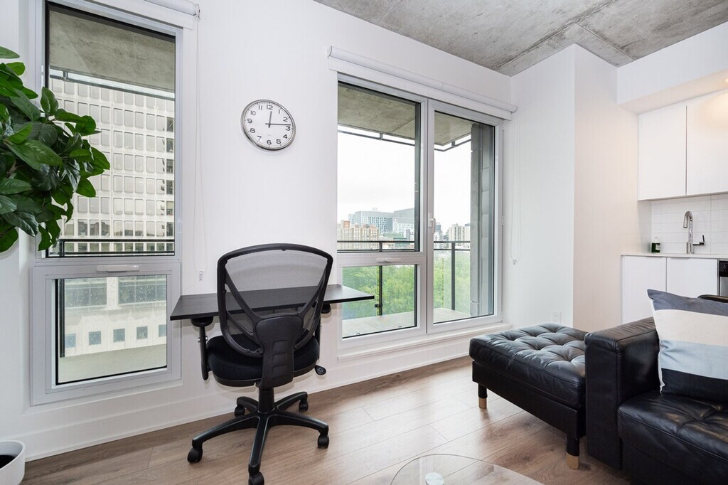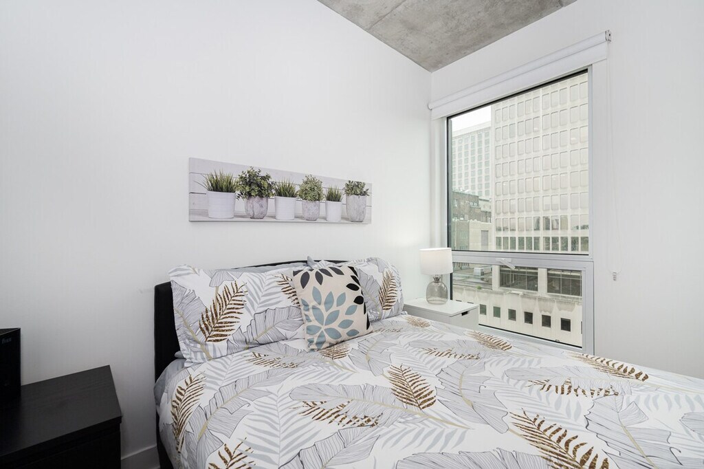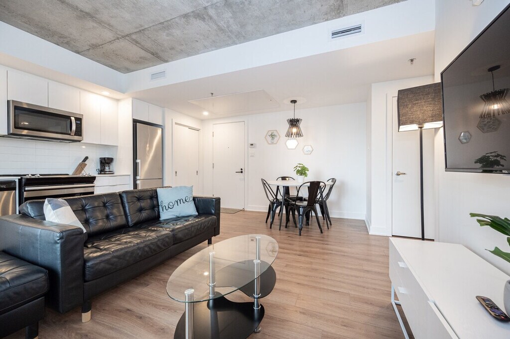 This remarkable addition to Montreal's skyline offers an unparalleled location for those eager to immerse themselves in the city's vibrant energy. Situated close to key landmarks such as the Berri-UQAM Metro Station, UQAM campus, Emilie-Gamelin Park, and bustling St-Catherine Street, you will enjoy seamless access to transportation, education, green spaces, and entertainment. This lovely apartment is located near the Berri–UQAM station, just a 5-minute walk away. It features one bedroom with a queen bed and one bathroom. The apartment offers convenient amenities such as an elevator, storage, gym, indoor parking, and a security system. It is pet-friendly, allowing you to feel at home with your furry friends. Indoor parking is available with in/out privileges. If you need parking, please let us know in advance to check availability. This service has a separate fee depending on your length of stay. We offer a variety of cleaning services, including bi-weekly or monthly options. If you require this service, please contact us for more information. This service has an extra charge. No parties of any kind or loud noises that can alter the harmony of residents are allowed. No smoking of any kind, including cannabis and cigarettes, is permitted inside the apartment, on the balcony, or within the building. Please care about your home away from home. [SI]