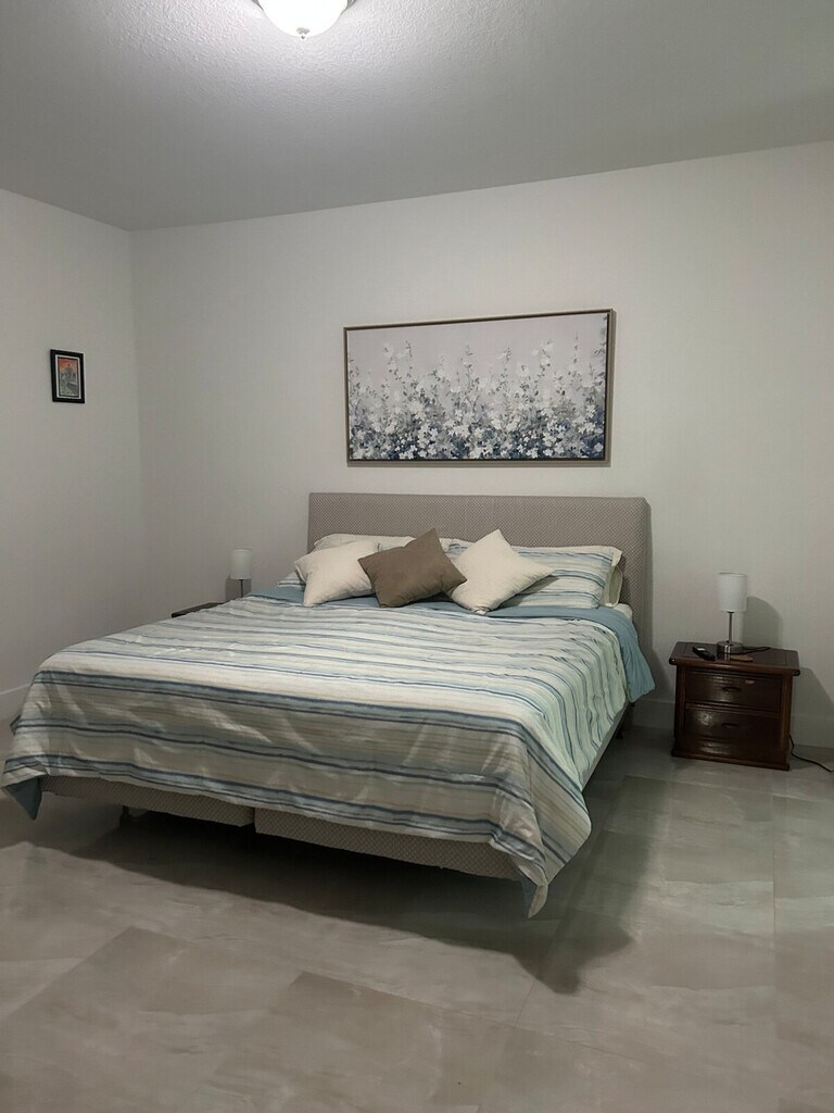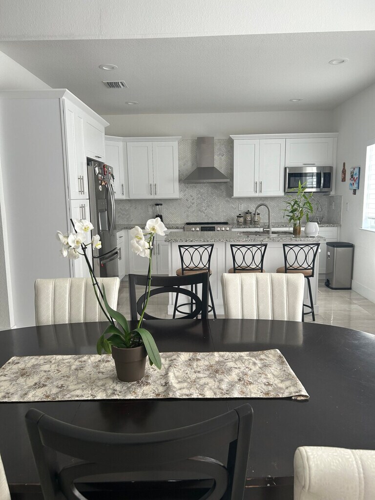 Welcome to your ideal getaway in this newly constructed home! This bright and spacious residence offers the perfect blend of relaxation and fun, making it the ultimate escape for families and friends. Unwind in the beautifully landscaped backyard, complete with plenty of space for yard games, lounging, and grilling—all the comforts of home, and then some. Step inside to a stylish, open-concept layout filled with natural light. Whether you’re cooking in the fully equipped kitchen, enjoying a movie night, or gathering around the dining table, there’s room for everyone to relax and enjoy. The kitchen boasts new stainless steel appliances, filtered water attached to the fridge, a coffee machine, kettle, dishwasher, and a comprehensive set of pots and pans, among other cooking basics. Pets are allowed with a fee. Parking is available with two spaces on the right side of the driveway and street parking in front of the house. Please do not block or park in the space on the left side of the driveway. Centrally located just 20 minutes from the airport, downtown, Wynwood, and most major attractions, this home offers the best of both worlds. The neighborhood is super private and quiet, yet just blocks away from shopping, groceries, and much more. A few blocks away, you'll find CVS, Publix, Starbucks, and more! This is a quiet residential neighborhood, and these rules are made to protect it and the neighbors' quality of life. No parties, gatherings, loud noises, loud music, or confetti are allowed. Smoking is only permitted outside, and a $500 cleaning fee will apply if smoking occurs inside the house. Quiet hours are from 10:00 PM to 7:00 AM, and violations will result in a $100 fine. Terrace hours are from 7:00 AM to 10:00 PM. Please clean the grill after use and do not move interior or exterior furniture. Security cameras are located outside for security purposes. Trash collection occurs on Tuesdays and Fridays for regular trash and Tuesdays for recycling. Please place bins at the sidewalk for collection and return them after pickup. Close doors and windows at night and respect neighbors by not playing loud music or hosting parties. Each bedroom is equipped with a TV and high-speed Wi-Fi, providing a comfortable environment for remote work. A desk is available in some rooms for your convenience. Registration Number: U