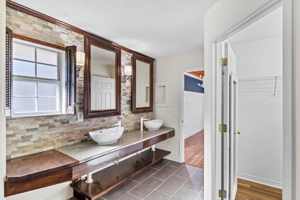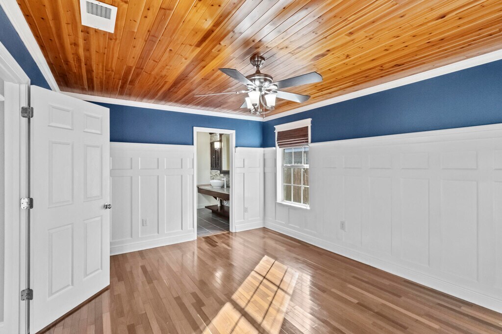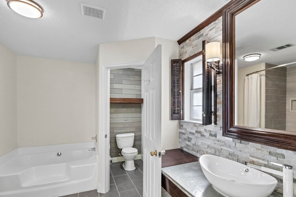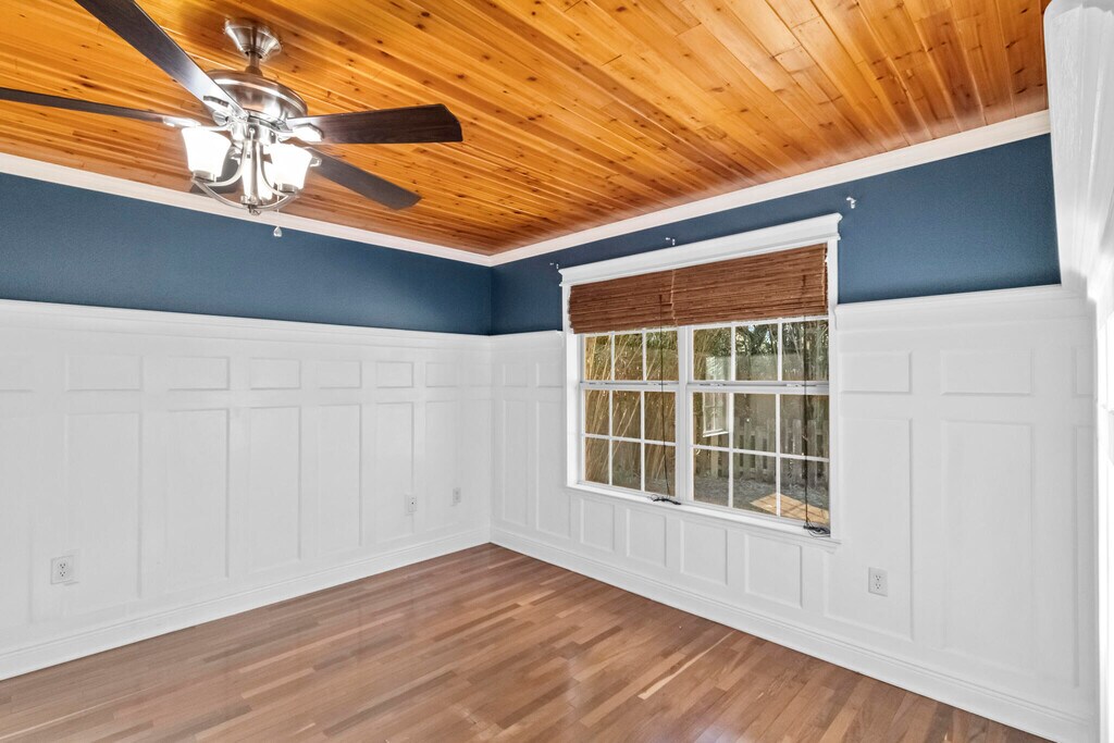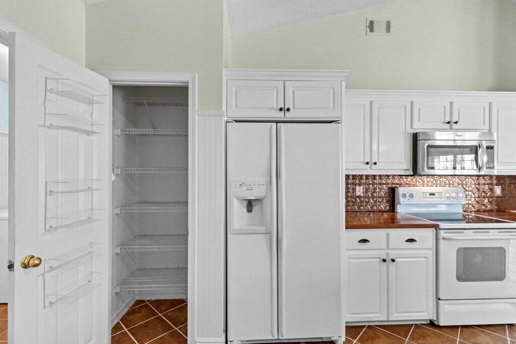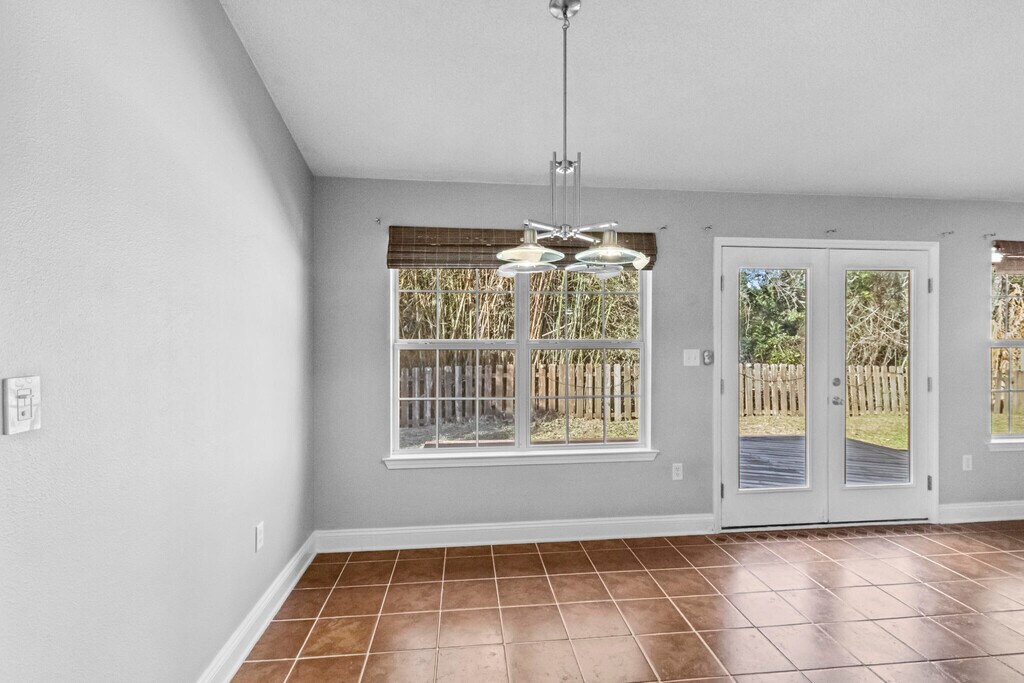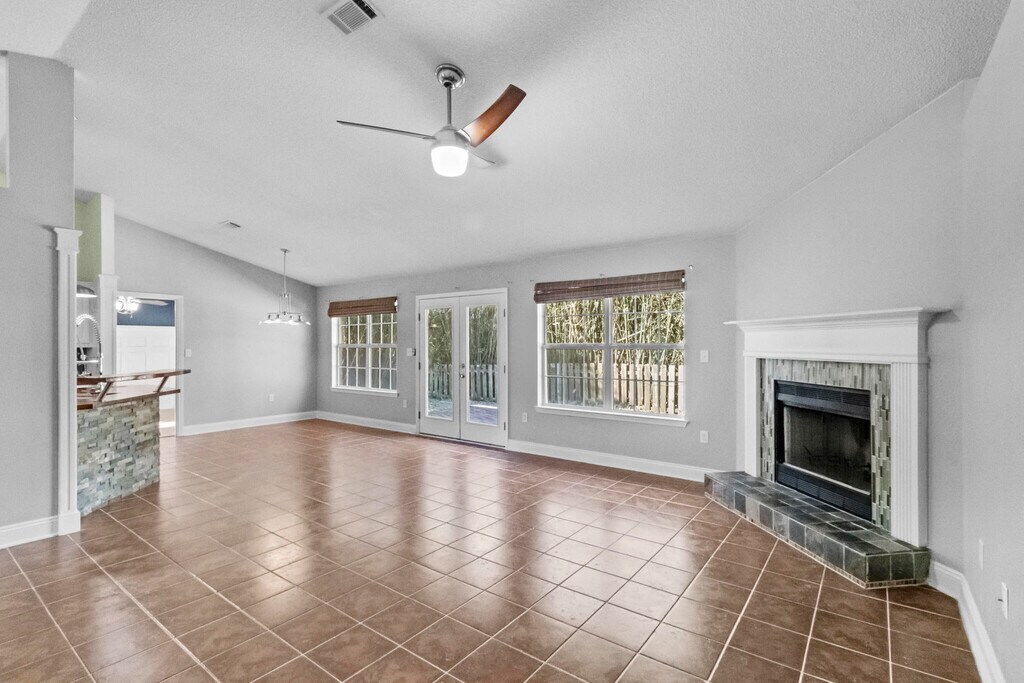 This is a 4 Bedroom, 2 Bathroom home in Berkeley forest subdivision in Gulf Breeze. Open concept floor plan with tile and hardwood floors (NO CARPET) throughout the entire house. Useable wood burning fireplace in front living room area. Kitchen has stunning wood countertops with high arch faucet and deep stainless steel sink. All white appliances. The master bedroom features wainscoting on the walls with tongue and groove wood on the ceiling. The updated bathroom offers cement countertop for double vanity and the new tiled shower is beautiful. Newer deck in the backyard. Pets upon approval.