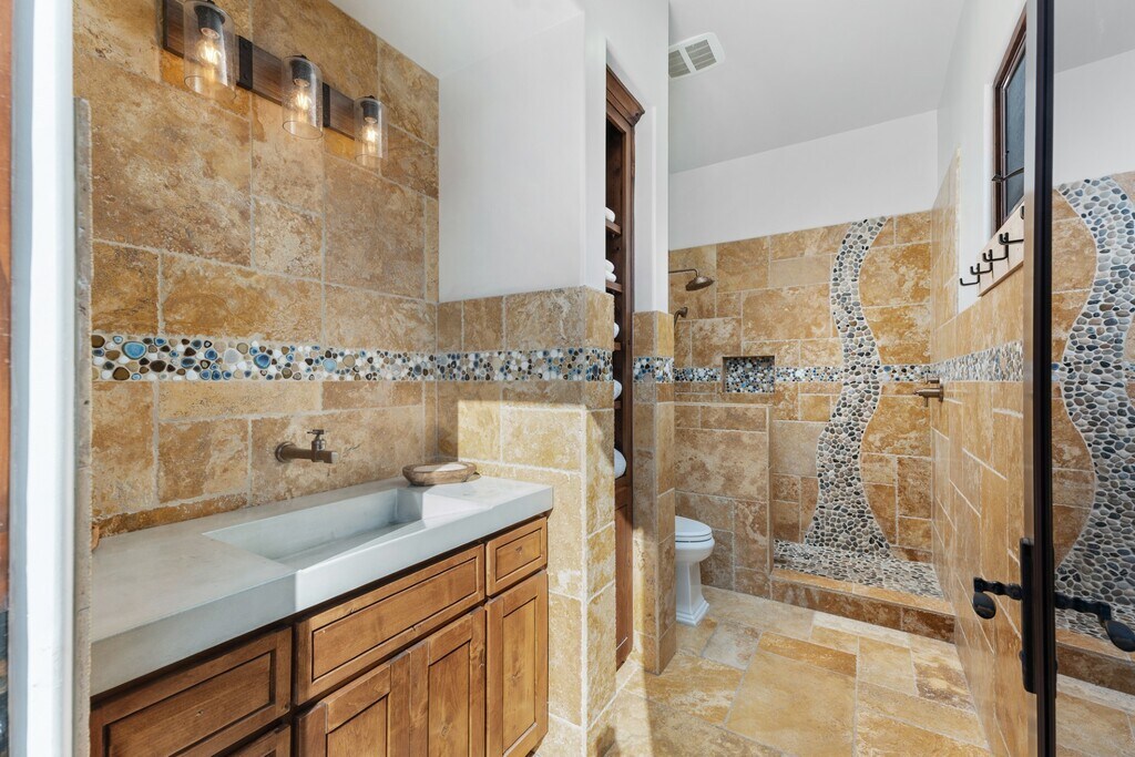 Exquisite & meticulously furnished estate in desirable gated community in Rancho Santa Fe! Nestled on 2 lushly landscaped acres, this exceptional Weir Brothers built home offers the pinnacle of privacy, sophistication, and timeless craftsmanship. Designed for seamless indoor-outdoor living, the single-level main residence spans over 8500 sq. ft. and features 5 bedrooms/ 9 baths, plus brand new Dolby Atmos 360 surround sound home theater! In addition, home is complemented by 850 sq. ft. detached guest house with its own bedroom, full bathroom, living room & kitchen. Schedule your private tour today!