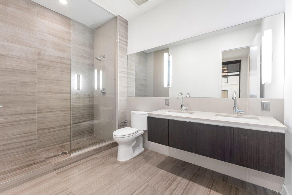 This loft-like space has only the finest finishes: polished concrete radiant heated floors throughout, Italian Pedini cabinets, Caesar Stone counters, Liebherr, Bertazzoni and Miele stainless steel appliances, 13' ceilings, 300 sq ft terrace leads down to 700 sq ft yard. Full amenities include 24 hr concierge, fitness center, rooftop deck with pool, dining area and gas grills, yoga room, kids room, and event space.