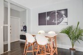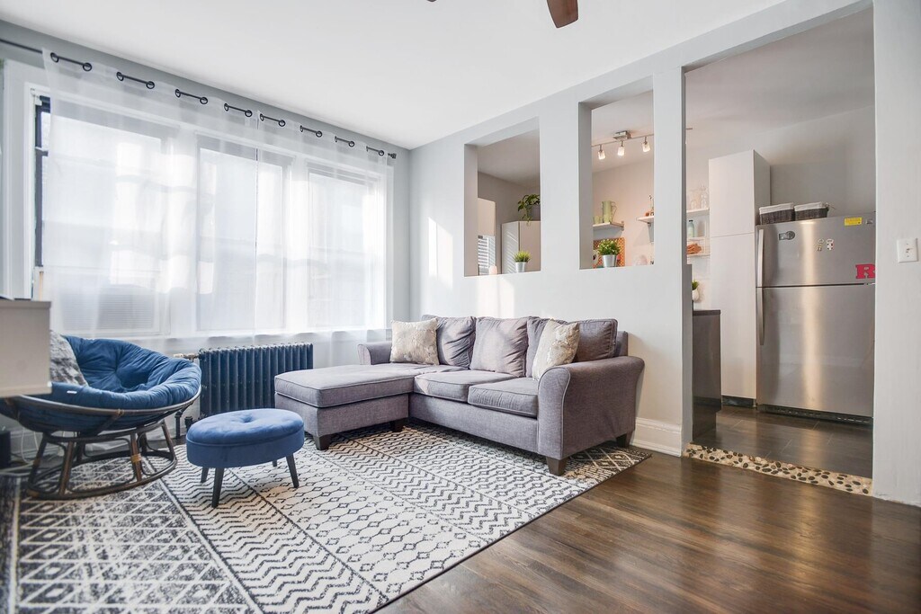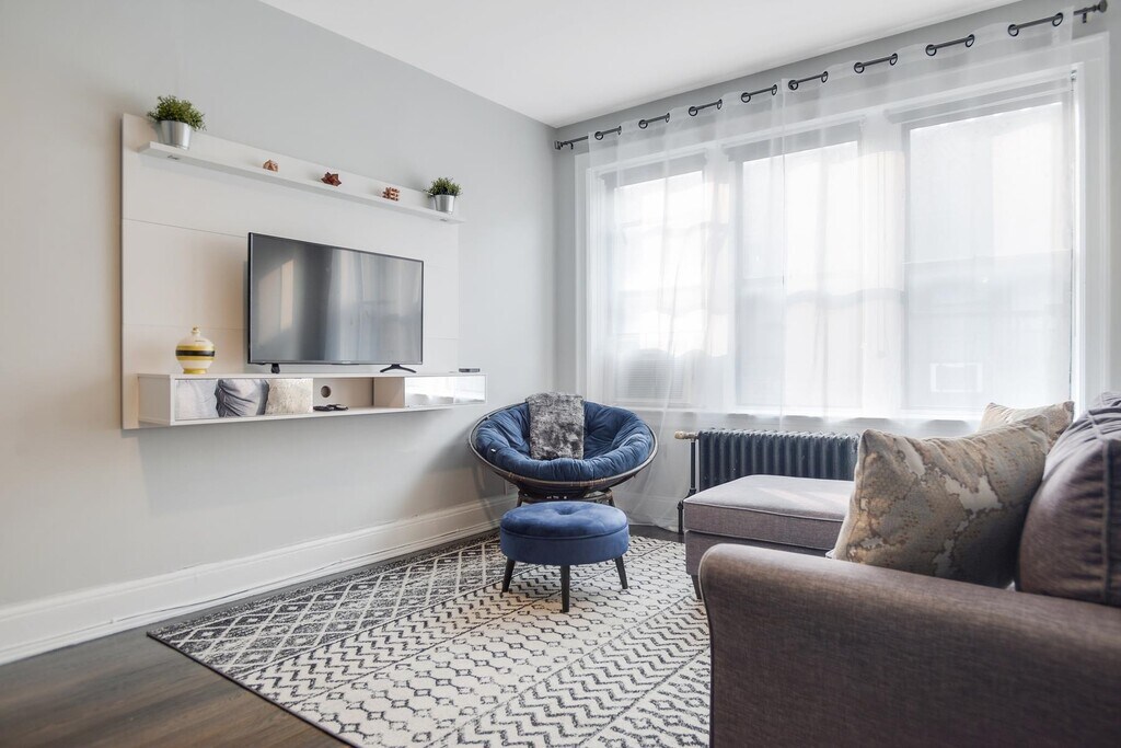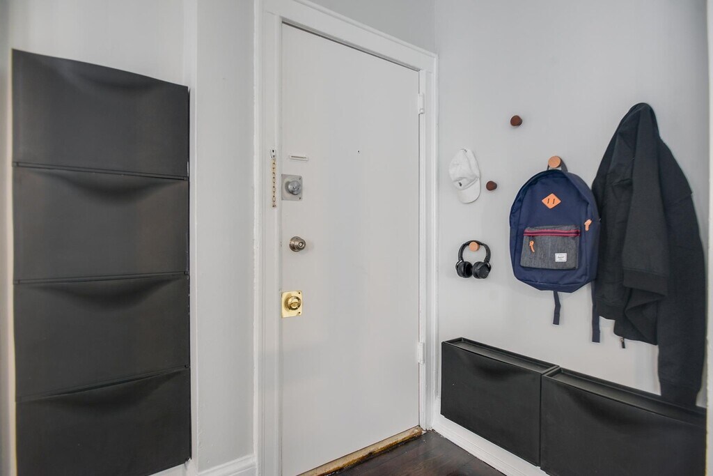 Looking for a home with an easy commute to Manhattan and quick access to major highways? This beautifully maintained 1-bedroom, 1-bath condo in a charming pre-war building offers the perfect blend of classic character and modern comfort. The top-floor corner unit is filled with natural sunlight streaming through large windows, highlighting the polished hardwood floors and 9+ foot ceilings that create a bright, airy feel throughout. The oversized bedroom features a custom built-in closet system, ample storage, and enough space for a cozy seating area, along with a partial view of the New York City skyline. The modern kitchen is equipped with stainless steel appliances, generous counter space, and plenty of cabinetry, perfect for cooking and entertaining. The condo’s smart box-style layout maximizes every inch of space, providing both functionality and style. Minimalist finishes and thoughtful design details add to its modern, sophisticated appeal. Heat and hot water are included in the rent, and residents enjoy the convenience of an on-site shared laundry room. Located on the Weehawken border, this home is within walking distance of grocery stores, delis, cafés, restaurants, and the beautiful Weehawken waterfront. Commuters will appreciate the 24/7 direct transportation into Manhattan just steps away, as well as easy access to major highways. This sun-filled condo offers effortless city living with suburban comfort in an unbeatable location.