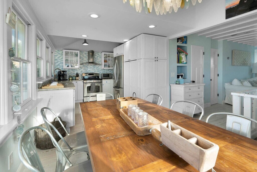 The advertised rate of $4,650/month is the lowest available price, based on a 30 day(s) stay with a move-in date of October 1, 2026. Rates vary depending on the duration of stay, season, and other parameters. For exact pricing and additional pricing components, please visit our website and enter your desired move-in and move-out dates. The rate is applicable when billed upfront; it can be higher if billed in multiple payments. Feel at home in this waterfront home with direct beach access and calm bay views on the North Fork. This home features two bedrooms and two full bathrooms. This home is laid out across two levels and designed for easy, comfortable stays. The home has central air and heat for year-round comfort, fast Wi-Fi, and cable TV. Kayaks and paddle boards are provided so guests can enjoy the calm bay directly from the property. The king-size bedroom is on the ground floor and includes a private en-suite bathroom and direct access to the lower level. The main level features the queen bedroom, a full bathroom, an open kitchen, and a bright living area with bay views. The separation works well for couples, small families, or guests who want privacy between sleeping areas. Complimentary parking is available. There is a standard pet fee of $200 per pet per stay, and an additional $100 may apply for dogs that shed excessively. For stays over 21 days, any extra utility costs beyond the initial charged amount are the guest's responsibility. For reservations of 29 nights or more, a refundable deposit will be collected prior to arrival. Vineyards, farm stands, and North Fork dining are a short drive away. A waterfront restaurant with a tiki-style bar is located just across the street. Greenport, Shelter Island, Montauk, Fire Island, and the Hamptons are all easy day trips, making this a convenient base for exploring the region. Nearby attractions include The Barn of Wading River (1.1 miles), Bakewicz Farms (2.3 miles), The Shoppes at East Wind (3 miles), East Wind Day Spa (3.2 miles), and Wildwood State Park (3.4 miles). Quiet hours are observed between 10 PM and 8 AM. The primary renter must be at least 25 years old. The property has outdoor security cameras for safety and added peace of mind. All outdoor amenities, including patio furniture, grills, and other exterior equipment, are typically stored away between Columbus Day and Memorial Day. Registration Number: SCTM# 29. -1-26 [SI]
