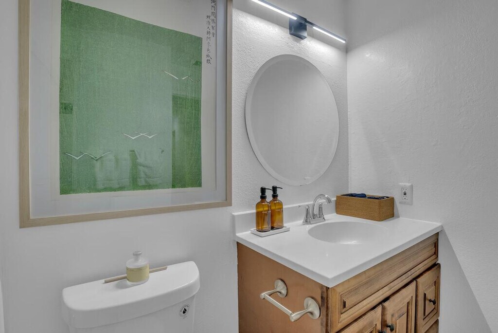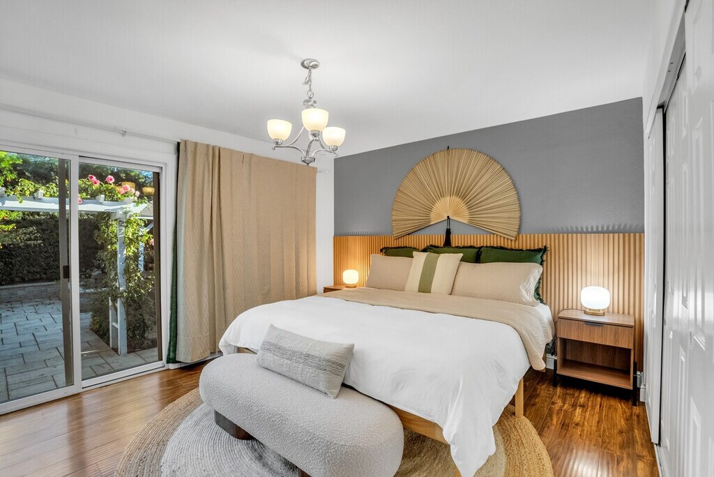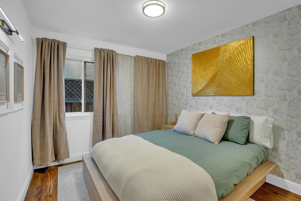 Step into tranquility at this beautifully curated retreat, where the harmony of Japandi design meets the convenience of modern living. This serene escape is perfect for families, friends, or couples seeking a blend of style, comfort, and relaxation. Feel at home in this thoughtfully designed space. The apartment features Japandi-style decor, combining minimalist elegance with cozy functionality to create a calming ambiance. Unwind in your private outdoor jacuzzi under the stars or enjoy a game night in the game room, equipped with entertainment for all ages. The fully equipped kitchen allows you to prepare your favorite meals with ease using state-of-the-art appliances, while the barbecue grill offers the perfect opportunity for al fresco dining in the garden. Stroll through the beautiful garden or savor your morning coffee in a peaceful outdoor setting. Located within a 5-minute drive to nearby amenities, you’ll find City Sports Gym and 24-hour fitness for your workout needs, and groceries are conveniently available at Costco, Target, and Safeway. [SI]