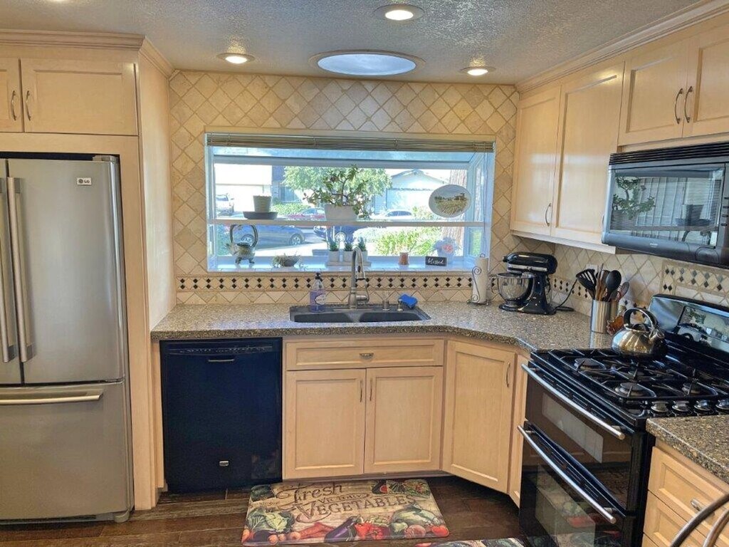 - 3 Bedroom 2 Bath w/ Office - Remodeled One Story Home w/ Open Floorplan - Cul-De-Sac Location Close to Schools, Shopping, and More - 2 Car Garage w/ Large Driveway - Landscaped Front and Rear w/ Sprinkler System and Newer Fencing - Newer Interior and Exterior Paint, Newer Fixtures, Newer Flooring, Newer Switches and Outlets, Dual Pane Windows and Sliders - Paver Walkway to Entry w/ Front Security Door - Unique Centrally Located Indoor/Outdoor Atrium - Dark Hardwood and Carpet Throughout Home - Built in Storage Space and Cabinetry - Newer Fixtures in Remodeled Bathrooms w/ Great Water Pressure! - Living Room Features: Carpeted Floor, Vaulted Ceiling, Recessed Lighting, Ceiling Fan, French Doors to Backyard - Remodeled Kitchen Features: Newer Cabinets, Granite Countertops, Tile Backsplash, Matching Appliances, Recessed Lighting, Sunlight, Pantry Cabinet, Bottle Storage Rack, Garden Window over Double Sink - Formal Dining Area Features: Hardwood Floors, Modern Ceiling Fan w/ Light, Vaulted Ceiling, Recessed Lights, Bar Stool Counter Area w/ Drop Down Lights - Indoor Office Features: Carpeted Floors, Built-in Wrap-A-Round Desk w/ Granite Top, Recessed Lights, Window Looking into Atrium - Bedrooms Feature: Ceiling Fans, Newer Carpet, Newer Blinds, Closet Built-Ins - Hallway Features: Hardwood Floors, Custom Indoor Window Art, Recessed Lights, Large Linen Cabinet, Coat Closet - Hall Bathroom Features: Custom Painted Door, Tile Floors, Newer Vanity w/ Top, Newer Fixtures, Newer Mirror, Unique Tiled Soaking Tub - Master Bedroom Features: Carpeted Floors, Recessed Lights, Ceiling Fan, Mirror Closet Doors w/ Built-In Racks, Slider to Atrium - Master Bath Features: Tile Floors, Newer Vanity w/ Top, Newer Fixtures, Tiled Shower w/ Newer Glass Doors, Recessed Light and Skylight - Garage Features: Painted Floor, Storage Cabinets and Shelves, Water Softener, Laundry Area, Work Bench Area - Backyard Features: Paver Patio w/ Overhang, Built in BBQ Area, Paver Sitting Area