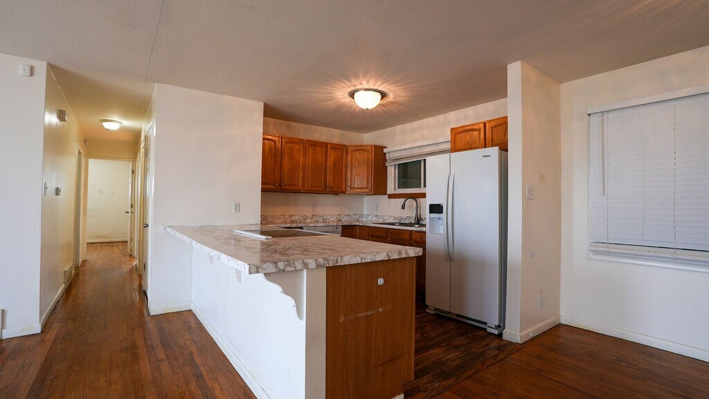 Ideally located just off Second Street, this well-maintained 3-bedroom, 1.5-bath home offers the perfect blend of comfort and convenience. The main level features beautiful hardwood flooring and a bright, open kitchen, a large breakfast bar, and updated appliances. The exterior features a large, paved parking area so you never have to worry about street parking, and the fenced yard provides a secure space for outdoor activities. Clean, bright, and ready for you to make it your own! RV Parking Cats and dogs welcome. This is a non-smoking home. Please call for a showing or visit