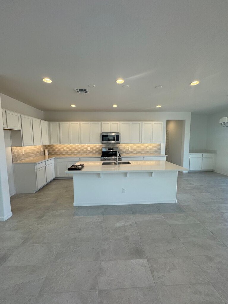 A beautifully upgraded island kitchen with a walk-in pantry opens to the dining area, a spacious great room, and a covered outdoor living space perfect for relaxing or hosting guests. On the main floor, a guest bedroom with an adjacent full bath is ideal for visitors. Upstairs, three additional bedrooms include a spacious owner's suite with a spa-inspired bath and a large walk-in closet. Located in the heart of Surprise, Los Cielos puts you minutes from top-tier shopping, dining, and entertainment. It's everything you need to enjoy modern desert living, all in one place. Additional highlights added include: bedroom and bath on first floor and loft at second floor.