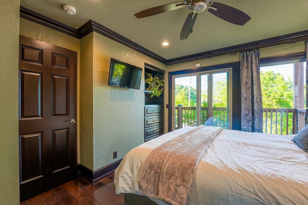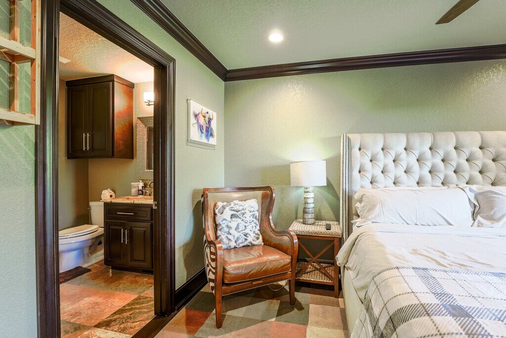 Experience the charm of lakeside living in this modern retreat with a scenic balcony overlooking Beaver Lake. This second-floor apartment offers a king suite and a queen bedroom, each with its own full bath, comfortably accommodating up to four guests. Enjoy the open-concept living area with plush seating and a smart TV, and a fully stocked kitchen featuring stainless appliances and granite countertops. Central heat and air ensure year-round comfort, and a dedicated desk with high-speed Wi-Fi makes it ideal for remote work. Welcome to your modern lakeside retreat, perfectly positioned to balance relaxation and adventure. Wake up to serene lake views from the private second-floor balcony, then head out to explore Beaver Lake and Prairie Creek Marina just minutes away. The apartment features an open-concept living area with plush seating and a smart TV, a fully stocked kitchen with stainless appliances and granite countertops, and two suites—one king and one queen—each with its own bathroom for maximum privacy. An additional half bath is conveniently located on the main level. Enjoy year-round comfort with central heat and air, and stay productive at the dedicated desk with lightning-fast Wi-Fi. Bring up to two well-behaved dogs for a small fee. Parking for two vehicles is available in front of the home. Situated in the quiet Prairie Creek area near Rogers, this apartment is just a 5-minute drive to the marina, hiking trails, and boat rentals on Beaver Lake. Downtown Rogers and Bentonville—home to world-class museums, restaurants, and shops—are 15–20 minutes away. Guests enjoy a peaceful neighborhood while still being close to the region’s top attractions. A car is recommended for exploring the area, with parking available for two vehicles in front of the home. Rideshare and food delivery services operate locally, and the Northwest Arkansas National Airport is about 25 minutes away. No smoking or parties are allowed, with a $1,000 fee for smoke remediation. Quiet hours are from 9 PM to 8 AM to respect neighbors. An exterior camera monitors the driveway for your safety. Starter supplies of toiletries, paper products, and coffee are provided, but longer stays may require replenishment. Up to two dogs are allowed, but please clean up after them and keep pets off beds and furniture. Enjoy hassle-free check-in with a keyless entry code provided before arrival. Our team is available for support if needed during your stay. Ideal for remote workers with a dedicated desk and high-speed Wi-Fi. A laptop computer is not included. [SI]