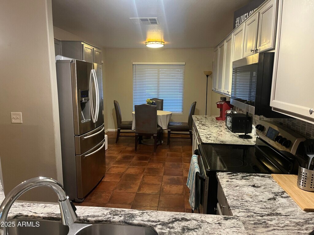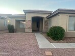 This beautiful single level home is located in a lovely Surprise neighborhood that is beaming with curb appeal. Walking distance to multiple school and parks and neatly situated near groceries,dining,and easy access to the loop 303 freeway. This 5 bedroom 2 bathroom floor plan features diagonal tile flooring throughout the main living area and master bedroom,also neutral two tone paint throughout,inside laundry,and ceiling fans in every room! The kitchen has freshly painted cabinets,granite countertops,and a tile backsplash. The bathrooms both have matching granite countertops as well and crisp white cabinets. The master suite is spacious with crown moulding,a private bathroom,and walk in closet. The backyard boasts a huge covered patio a grass yard,& matured tree.