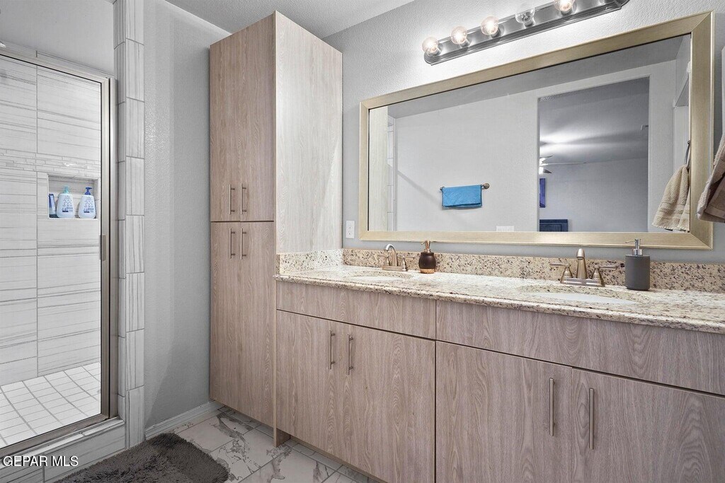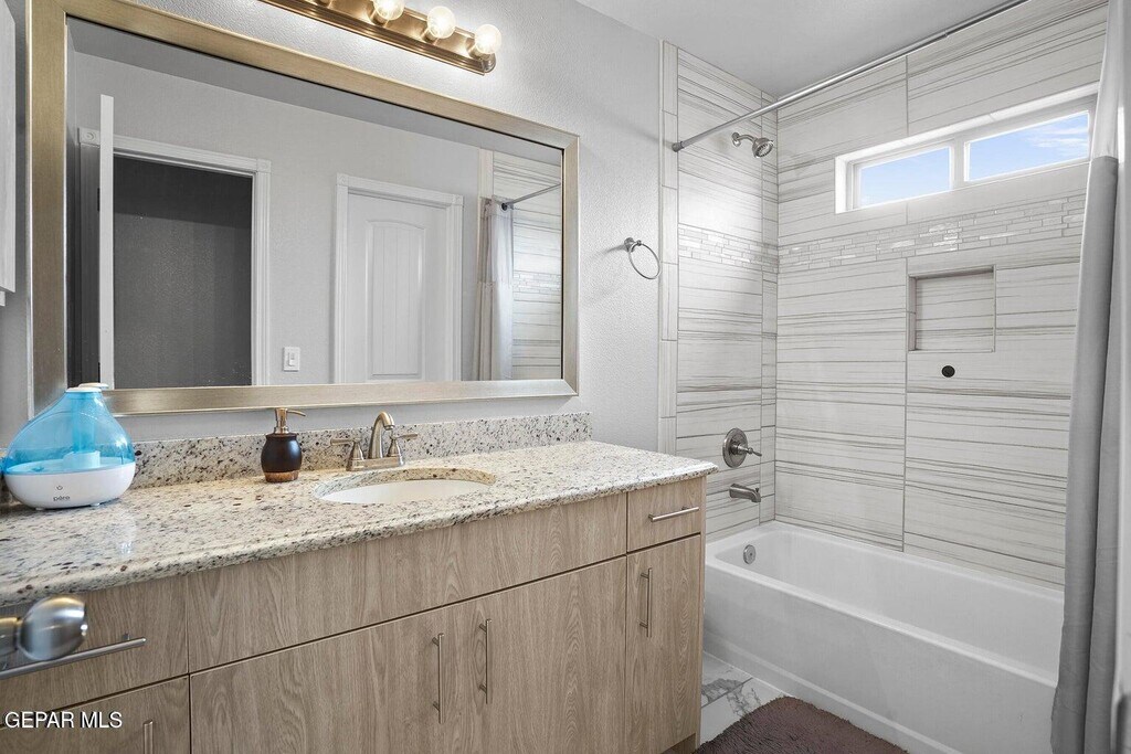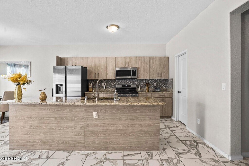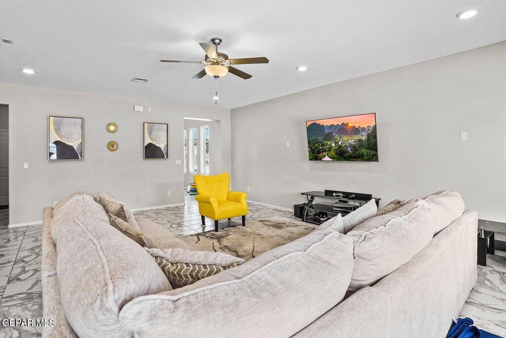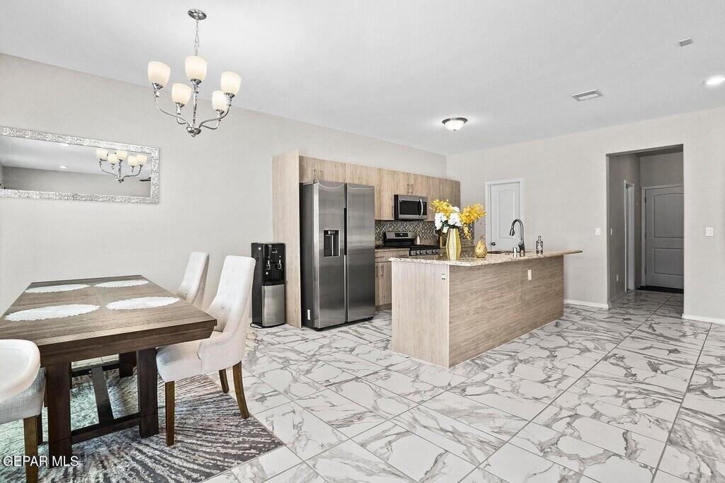 Welcome to 14816 William Meshel Drive,a lovely rental home in East El Paso. This spacious property features 4 bedrooms,3 bathrooms,and an open-concept layout designed for modern living. The kitchen offers granite countertops,stainless steel appliances,and ample cabinet space,flowing seamlessly into the dining and living areas. The primary suite includes a walk-in closet and private bath. Additional highlights include tile flooring throughout,refrigerated air,and a fenced backyard ideal for gatherings or relaxation. Conveniently located near schools,shopping,and Loop 375 for quick access around the city. Schedule your showing today!