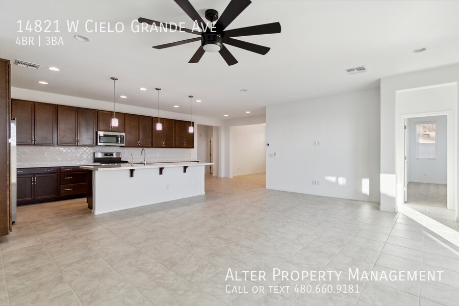 There is currently a 4 Bed 3 Bath Home for rent with 2,199 sq ft listed at 14821 W Cielo Grande Ave. It is Available Now.