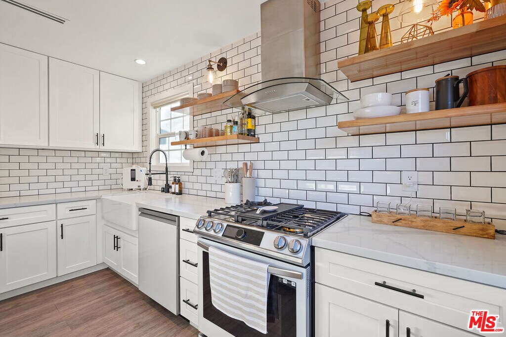 This beautifully remodeled property, completed in 2023, offers modern living with style and convenience. The main house features 2 bedrooms and 2 bathrooms completely remodeled. The chef's kitchen is a dream, complete with a farmhouse sink, touch-screen refrigerator, kitchen island, and dining area. The fully fenced property boasts a landscaped front yard and a rear carport with a Tesla charger and electric gate for easy alley access. Additional features include central air, a washer and dryer, and the option to rent fully furnished. Converted garage unit detached from main house is rented and will share automated gate entry from alley. Conveniently located near Sherman Way and Van Nuys Blvd, with easy access to Ventura Blvd's shops and amazing restaurants, this home is perfect for comfortable, modern living. MLS ID 26777533