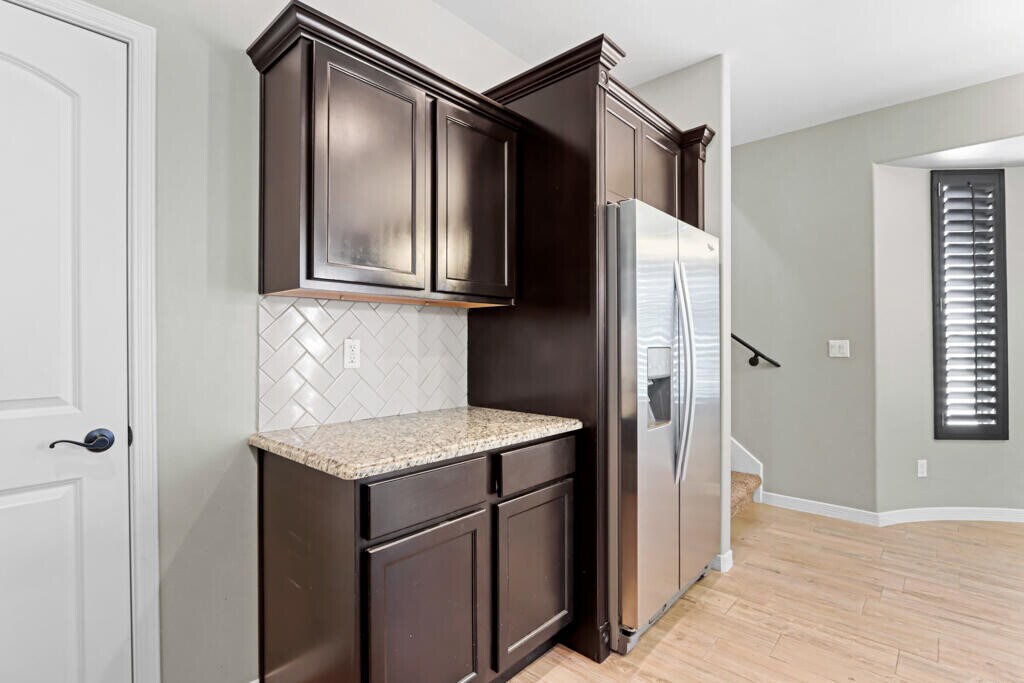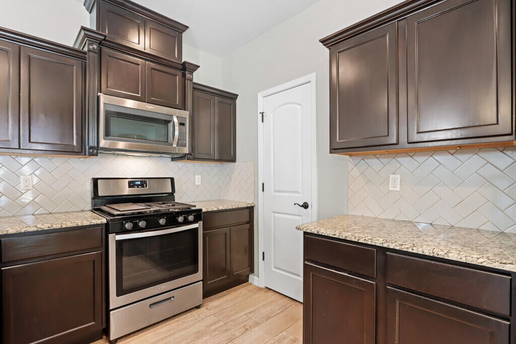 Beautiful & modern 2 story home! Open floor plan. Spacious living & dining areas. Kitchen offers breakfast bar,ample pantry plus all appliances included. 3 bedrooms,2 baths and laundry room located upstairs. Primary bedroom has walk in closet,primary bath with dual sinks and shower. Washer & dryer included. Ceramic tile in main areas,carpets in bedrooms. Guest bath downstairs. 2 car garage. Window shutters and granite countertops. Spacious yard. Come and make this house your home! AVAILABLE 05/01/2026.