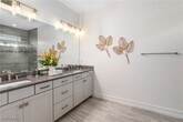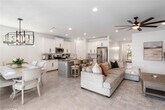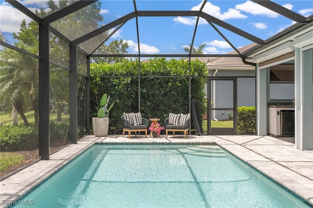 Welcome to this beautifully maintained 4-bedroom,2-bath pool home offering a gorgeous lake view that creates a peaceful and scenic backdrop. Featuring the sought-after Delray floor plan,this residence boasts an open-concept living space that's ideal for both relaxing and entertaining.Step into a home filled with natural light and upgraded designer touches,including brand-new lighting fixtures and a thoughtfully enhanced kitchen. The kitchen showcases a neutral tile backsplash,a spacious walk-in pantry,soft-close cabinetry with smart pull-out drawers,and a hidden trash system for a clean,streamlined look.The bathrooms feature floor-to-ceiling tile and are meticulously maintained. The primary suite offers a peaceful retreat with two walk-in closets,a double vanity,and a large walk-in shower with multiple showerheads. One guest bedroom includes a versatile queen-sized Murphy bed,making it perfect for use as a home office. The other guest rooms are comfortably furnished with a king and a queen bed. The laundry room includes a utility sink,built-in cabinetry,and a brand-new washer and dryer.The two-car garage is outfitted with wall-mounted storage and bike racks for added convenience. Step outside to a private,screened-in lanai featuring a heated pool surrounded by lush,tropical plant walls and gorgeous views of the lake. An outdoor kitchen with adjustable sunshade shutters makes entertaining a breeze.This home is located in a gated,resort-style community offering incredible amenities. Cool off in the community pool,grab a bite at Latitudes Café,or enjoy drinks with neighbors at the Tiki Bar. Outdoor enthusiasts will love complimentary access to paddleboards,kayaks,canoes,and water bikes on Eagle Lake. Stay active with the fully equipped fitness center,bocce ball and beach volleyball courts,and the Match Point Complex featuring five tennis courts and four pickleball courts.This home blends luxury,comfort,and lifestyle — perfect for your next Florida getaway.The property is still available for December 2025 and will be available for an annual lease starting May 1,2026.