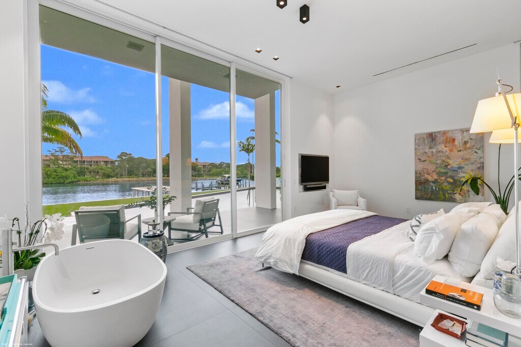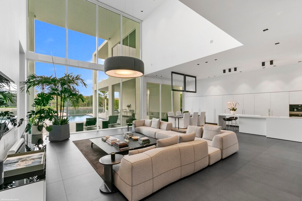 Nestled in prestigious Palm Beach Gardens, this stunning single-family home epitomizes luxury living with its gorgeous water views and ultra-modern design. Boasting a prime location, every aspect of this residence exudes elegance and comfort.Upon entering, you are greeted by an expansive foyer that leads seamlessly into the spacious living areas. The interiors are adorned with high-end finishes, including large format tile floors, custom Bizassa tiled bathrooms, designer light fixtures, and soaring windows and glass doors, creating an ambiance of sophistication with unobstructed views. The gourmet kitchen is a chef's dream, featuring state-of-the-art appliances, sleek cabinetry, and a center island perfect for culinary creations or casual gatherings. Adjacent, the dining area