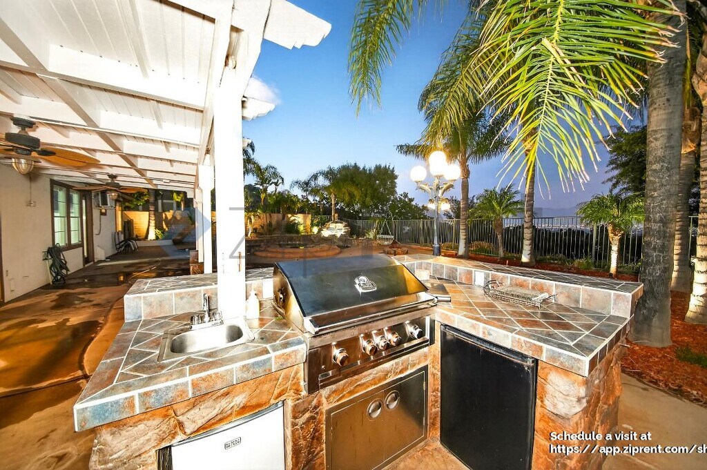 This property is available. Please inquire on this site to schedule a showing. Welcome to 1485 Clearview Cir, Corona, CA 92882, a stunning residence that perfectly combines elegance and comfort. This beautiful home greets you with a charming Mediterranean-style exterior, complete with lush landscaping and a welcoming pathway. The spacious interior features an open floor plan with a large living area, ideal for entertaining, and a modern kitchen equipped with granite countertops and stainless steel appliances. The primary suite offers a peaceful retreat with ample closet space and a luxurious en-suite bathroom featuring a soaking tub and dual vanities. Step outside to discover a backyard oasis designed for relaxation and leisure. The sparkling pool and spa are surrounded by a spacious patio area, perfect for outdoor dining or lounging under the sun. The built-in outdoor kitchen and barbeque area make it easy to host gatherings with friends and family. Located in a desirable neighborhood, this home offers convenient access to local amenities, parks, and schools, making it the perfect place to call home. Available: NOW Heating: ForcedAir Cooling: Central Appliances: Refrigerator, Range Oven, Microwave, Dishwasher Laundry: In Unit Parking: Attached Garage, Off Street, 4 spaces Pets: Case by Case Security deposit: $8,250.00 Included Utilities: Landscaping Additional Deposit/Pet: $500.00 Disclaimer: Ziprent is acting as the agent for the owner. Information Deemed Reliable but not Guaranteed. All information should be independently verified by renter. This property is listed by Ziprent on behalf of the property owner for tenant placement services only.