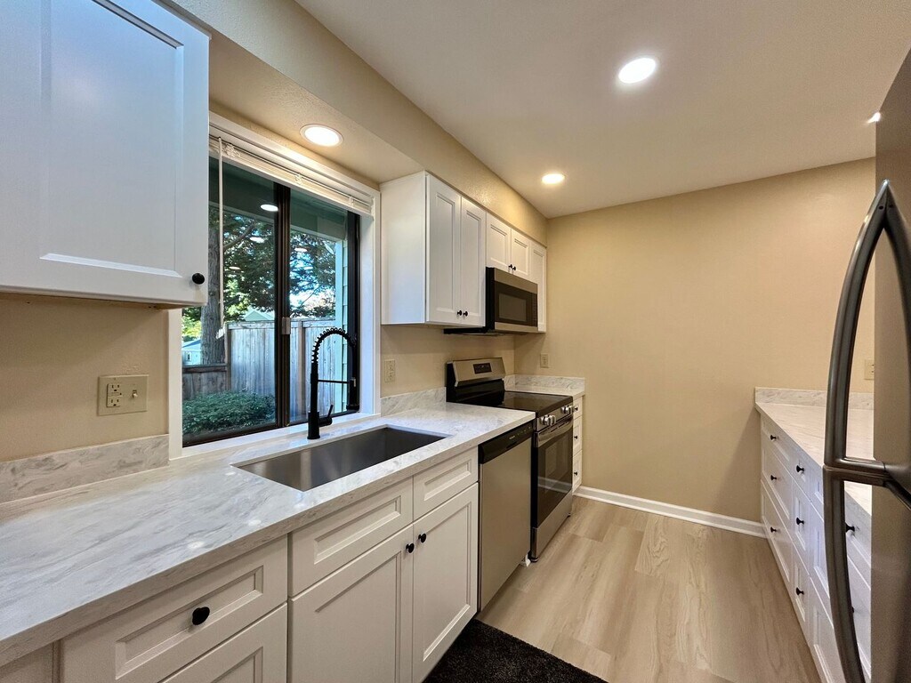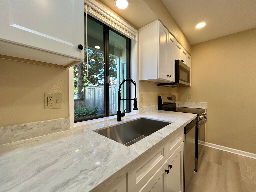 Welcome to this beautifully appointed 2-bedroom, 2-bath home, in a tranquil Tigard neighborhood surrounded by nature. Vaulted ceilings and pristine LVP flooring create a luminous, open atmosphere, the living area is anchored by a state-of-the-art heated electric fireplace with customizable flame settings, perfect for both relaxation and entertaining. The chef-inspired kitchen features stainless steel appliances, granite countertops, soft-close cabinetry, and an expansive island-ideal for culinary creativity and social gatherings. Seamlessly transition to the private, fenced backyard with patio, or take advantage of the detached two-car insulated garage with built-in shelving and lighting for ultimate convenience. The primary suite offers direct backyard access and a spa-like ensuite with a soaking tub, the secondary bedroom and hallway bath provide refined comfort for guests or family. Community amenities include a pool, recreation center, and nearby park with walking trails, all set amidst lush greenery. Thoughtful design, modern upgrades, and a serene setting combine to create a rare, move-in-ready opportunity with this hidden gem! Don’t wait now, schedule your tour today!* * Address: 14861 SW 106th Ave, Tigard, OR 97224 * Bedrooms: 2 * Bathrooms: 2.0 * Square Feet: 1,100 sq ft. * Rent: $2,095 * Security Deposit: $1,600 * Lease Term: 12-month * Utilities Included: Water/sewer * Utilities Tenant Responsible: Electricity, gas, garbage, and WiFi. * Parking: 2-car garage and free-street parking! * Laundry: Hook-ups * Pets: Sorry- pets are not permitted unless they are a registered ESA or certified service animal. * Landscaping: Backyard and front courtyard is tenant responsibility - tenant is not responsible beyond the front courtyard area. * Terms: No smoking. * Fully fenced backyard * Remote access, detached, 2-car garage. Includes shelving, lighting, and ceiling storage! * Secured storage room across the front entrance with built-in shelves and lighting! * New bark dust * HVAC A/C system and heat pump * Soft close drawers * All New: Cabinets, granite countertops, stainless steel kitchen appliances, LVP flooring, vinyl marble bathroom tile, paint, blinds, light fixtures, door knobs/handles, and a heated electric fireplace! Leasing Information: • Leasing Agent: Eustina • Tours available Monday- Friday • Email: • Cell: • Website: