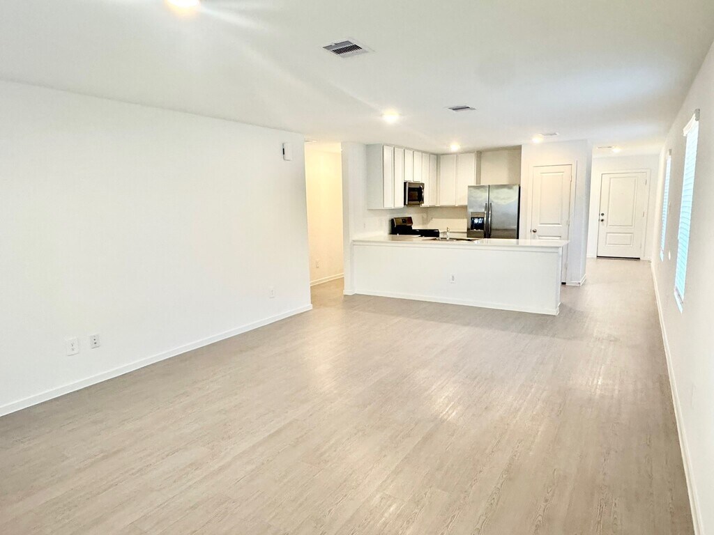 Single-story home features an open floorplan shared between kitchen,dining area and family room. The owner's suite is located in the rear corner of the home and includes an en-suite bathroom and walk-in closet. There are two secondary bedrooms along the side of the home. This property includes a Washer and Dryer. The landlord has installed a glass shower door,blinds and a garage door opener. MLS# 70600691