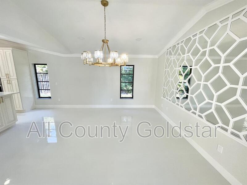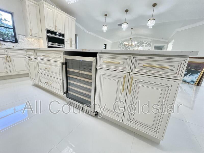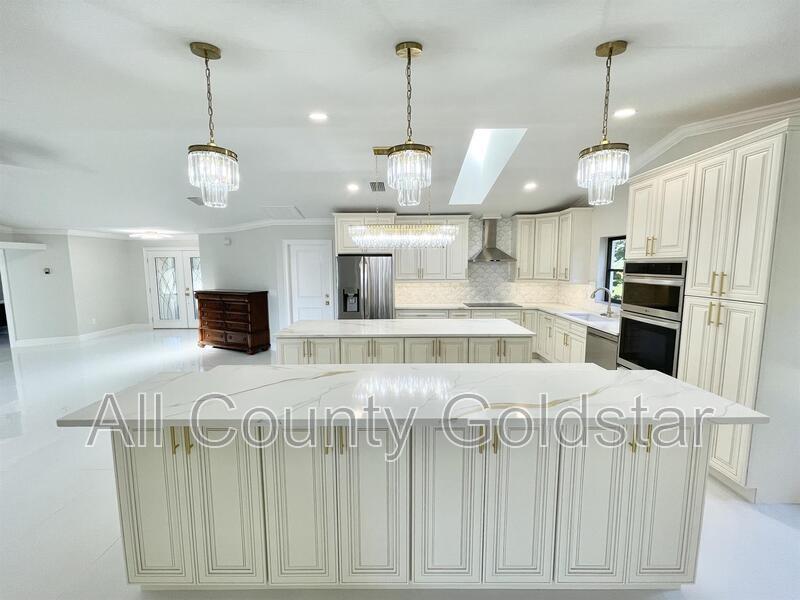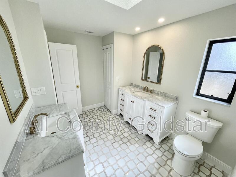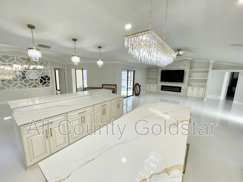 This stunning 3BR/2BA Englewood home has been fully renovated top to bottom with cohesive, high-end finishes throughout and is just a short drive or bike ride to Manasota Key Beach. Brand-new flooring flows into a striking living room featuring a gold-accent tile wall and sleek electric fireplace. The showstopping kitchen is fully reimagined with top-of-the-line appliances, a double island, induction cooktop, and built-in wine fridge—ideal for entertaining. A formal dining room with a mirrored accent wall sits just beyond. The primary suite offers two equal-sized walk-in closets and a beautifully updated bath with his-and-hers sinks positioned across from each other and an oversized walk-in shower with built-in bench. Outside, enjoy a fully caged lanai with artificial turf and pool, plus a private mini courtyard with mature tree and pavers. To schedule a tour or apply now please visit us at or call