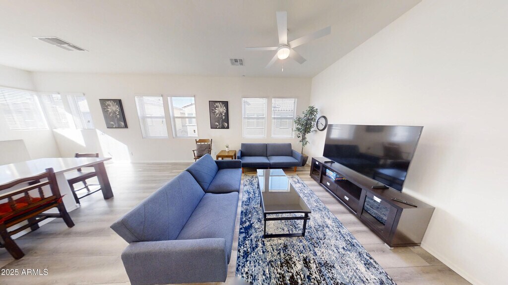 Beautiful furnished 2-bed,2-bath condo in the gated community of Village at Rio Paseo! Conveniently located just north of Harkins Theaters,this home is within walking distance of Goodyear Square,the library & great restaurants. The single-level living space welcomes you to 9+ foot ceilings creating an open,airy feeling throughout. The kitchen is a true highlight w/stainless steel appliances & sleek quartz countertops,fully stock kitchen,Primary bedroom provides an ensuite complete w/ dual sinks,walk-in shower & a walk-in closet. With two spacious bedrooms and well-appointed bathrooms,this condo is ideal for anyone looking for easy living with thoughtful touches.close to i10 and 303.
