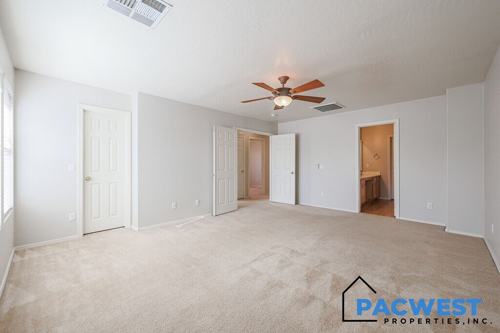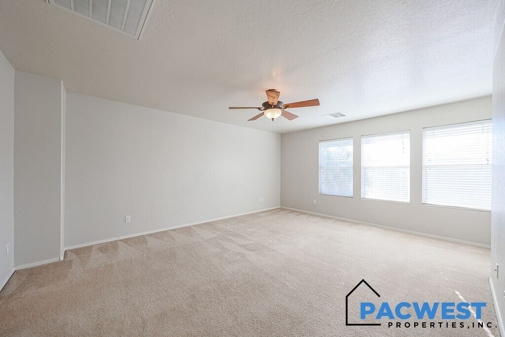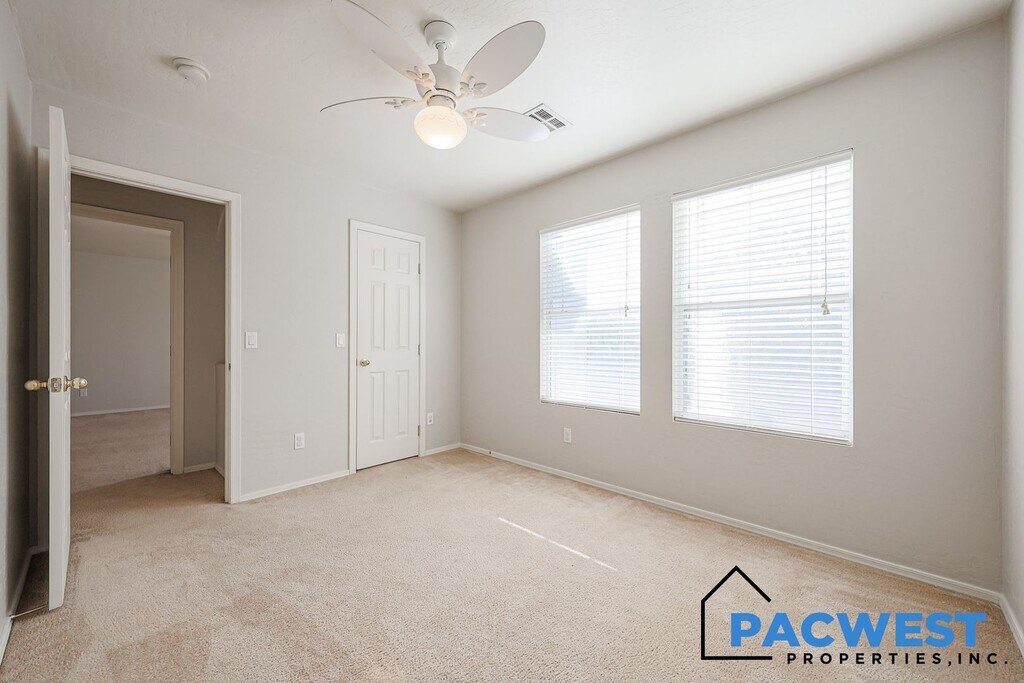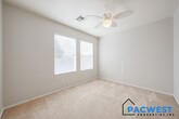 Beautiful and Spacious 4-Bedroom Home + Den with the added benefit of Solar! This well maintained 4-bedroom residence includes a versatile den with a built-in Murphy bed, making it an easy option for a fifth bedroom. The main level features an open great room, a bright kitchen with an eating area, a full bath, and the den. Upstairs, you’ll find an expansive loft with its own exterior door leading to a private balcony, upstairs laundry, four generously sized bedrooms including the large primary suite with ensuite bath and two walk in closets. Outside, enjoy a covered patio and a large backyard with plenty of room to play or relax. Enjoy the benefit of lower electric bills throughout the year with the use of the ample solar system! Located close to schools, ballparks, and the Surprise Aquatic Center, plus greenbelt trails and parks throughout the community, this home delivers comfort, convenience, and extra space where it matters. A must-see for anyone seeking a move-in-ready rental in a great neighborhood. Additional Fees: Tenant convenience package of $125.00 per month includes monthly front & back yard landscape maintenance and semi monthly AC filter change service. Deposit Breakdown: $2350.00 Refundable security deposit $400.00 Non refundable cleaning deposit $250.00 Non refundable pet deposit (per pet if applicable)