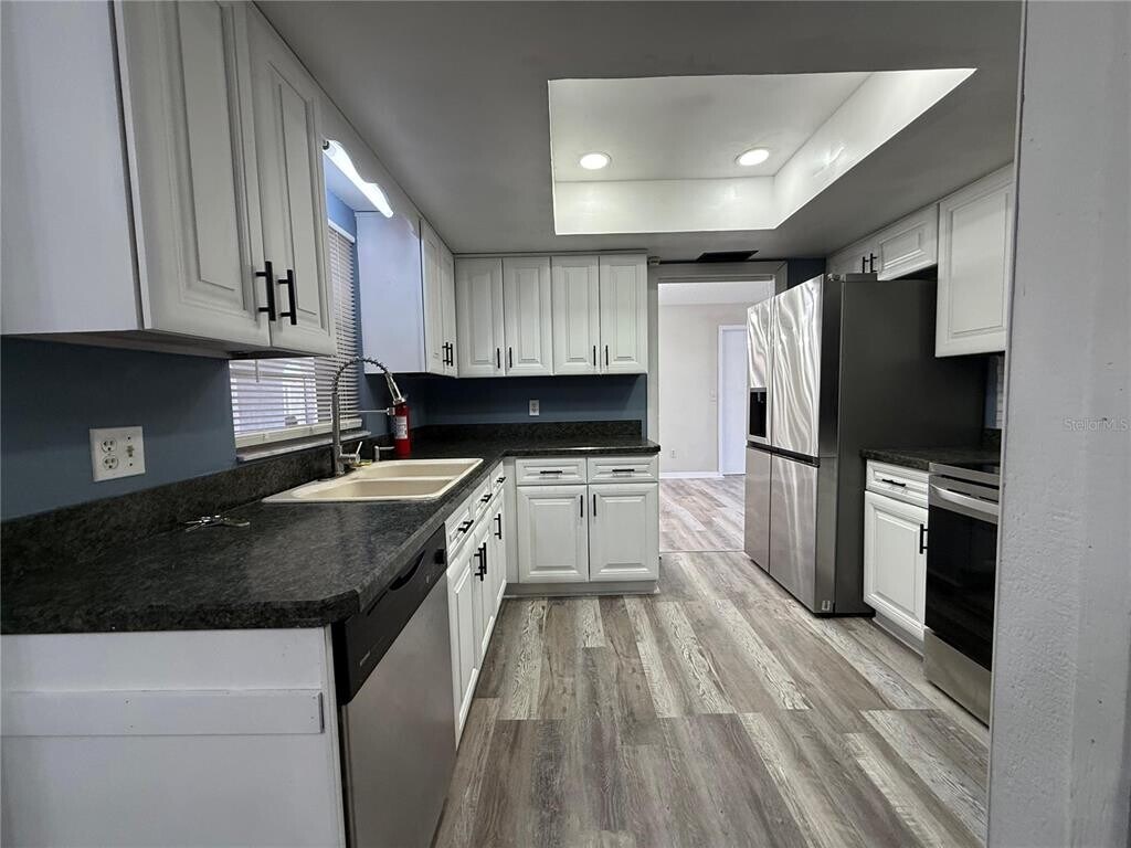 Welcome to this beautifully updated 3-bedroom,2-bathroom home located in the desirable Deltona Lakes community. Built on a spacious corner lot,this property offers a fully fenced backyard with a sparkling pool and a large,screened patio,perfect for entertaining or relaxing in privacy. Inside,you’ll find a bright and open floor plan featuring a remodeled kitchen with modern finishes,a cozy brick fireplace in the living room,and a convenient pass-through window to the outdoor kitchen and bar area. The primary suite includes a walk-in closet and updated bath,while the additional bedrooms provide ample space for family or guests. With its combination of indoor comfort and outdoor living,this home is ideal for those seeking both style and functionality. Conveniently located near shopping,schools,and major highways,this property is ready to welcome its next tenant. MLS# O6380147
