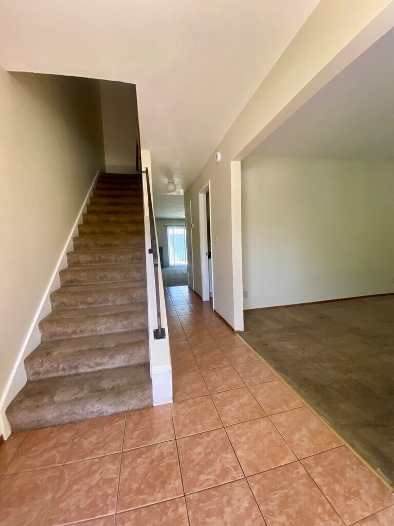 This 4BD/2.5BA is ready for you to call Home. Upstairs, the primary has a walk-in closet and full bath with shower. The 3 bedrooms each have ample closet space and large windows with lovely tree-top views. Downstairs, the kitchen includes a walk-in pantry and laundry area with a washer/dryer hook-up. The breakfast nook leads into the family room with a cozy fireplace. Just down the hall, is the half bath with new vanity and tile flooring. There is also a separate living room for an additional gathering space. The gated back courtyard leads to a detached garage making this home private and peaceful.