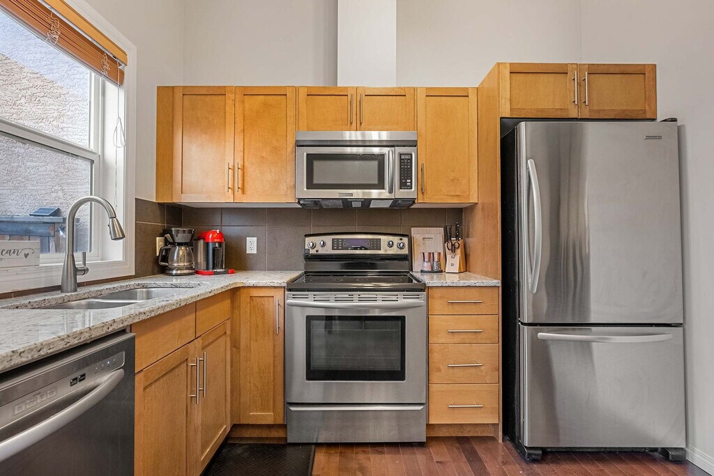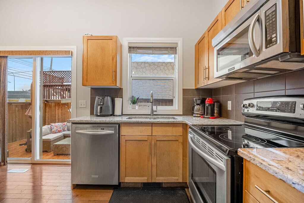 Welcome to The Prosecco, a charming three-floor home located just 7 minutes from Downtown Calgary. This inviting residence features two bedrooms upstairs, a living room and kitchen on the main floor, and a movie room and games room in the basement. Feel at home with the convenience of free street parking and easy access to local attractions, including a 15-minute drive to YYC Airport and a 4-minute walk to nearby restaurants. This delightful home offers two queen beds and a spacious couch, accommodating guests comfortably. Enjoy the convenience of two full bathrooms and two half baths, along with a fully equipped kitchen featuring a microwave, stove, oven, and air fryer. The dining table seats four, and additional amenities include a coffee machine, washer and dryer, SMART TV, foosball table, and a dedicated workspace. Outdoors, relax in the private fenced backyard with patio furniture and a BBQ. This pet-friendly home welcomes your furry companions, with a pet fee charged per pet plus any additional cleaning needed. Free street parking is available, but please refrain from parking on the neighbor's driveway. If you're interested in an early check-in or late check-out, there will be an additional $50 per hour once approved and if available. Nestled in a quieter community, The Prosecco is ideally situated close to the hustle and bustle of Downtown Calgary while offering a peaceful retreat. With just a 7-minute drive to the city center, 10 minutes to the Stampede grounds, and 15 minutes to YYC Airport, this location provides easy access to all the best Calgary has to offer. Enjoy a short walk to local restaurants and explore the vibrant neighborhood. Quiet hours are from 10:00 PM to 8:00 AM, and guests are asked to remove their shoes at the entrance. No overnight guests are allowed unless included in the booking, and parties or excessive noise are prohibited, with a $1000 fee for violations. Smoking is only permitted outside, away from windows, with a $1000 fee for indoor smoking. Check-out time must be adhered to, with a $85 per hour fee for delays. Some doors and closets are locked for personal use, and guests are responsible for any damages or disruptions during their stay. The home includes a dedicated workspace with a desk, providing a comfortable environment for remote work. A laptop computer is not included, but the space is equipped with Wi-Fi for your convenience. Registration Number: BL286613 [SI]