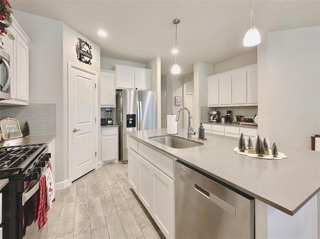Great opportunity to lease this beautiful home in the highly sought-after Bluestem community! Located within the award-winning Northwest ISD, this home comes with stainless appliances, including a gas range, dishwasher and refrigerator; a full-size washer and dryer are also available for tenant use. This beautiful single-story home offers an open concept floorplan featuring wood-look tile throughout most areas. Delightful chef’s kitchen incorporates a large quartz topped island with seating and overhead pendant lighting, built-in buffet, and walk-in pantry. The kitchen opens to the dining and living room, perfect for entertaining or relaxing! The private primary bedroom features a full bath with quartz counters, dual sink vanity, oversize walk-in shower, linen and huge walk-in closet. Three ample size secondary bedrooms with ceiling fans and large closets share a shower-tub combo full bath. The large grassy backyard includes a children’s playset and covered patio. The home faces an open area where neighbors and friends can easily gather. Bluestem offers a resort-style community lifestyle with amenities including a pool, playground, dog park, trails, and stocked fishing pond.