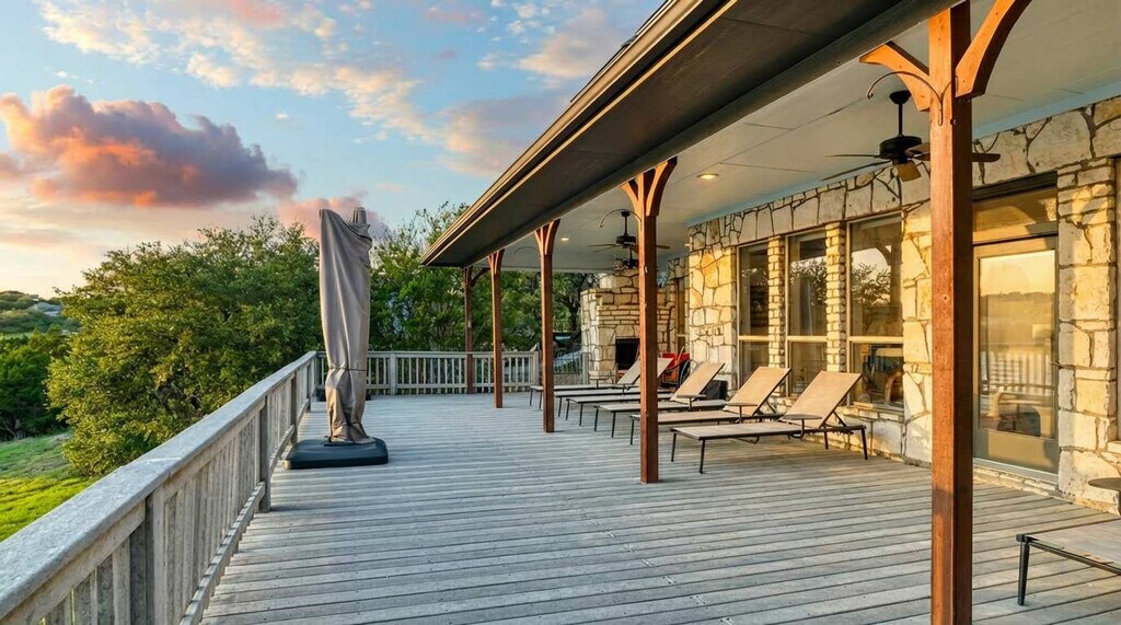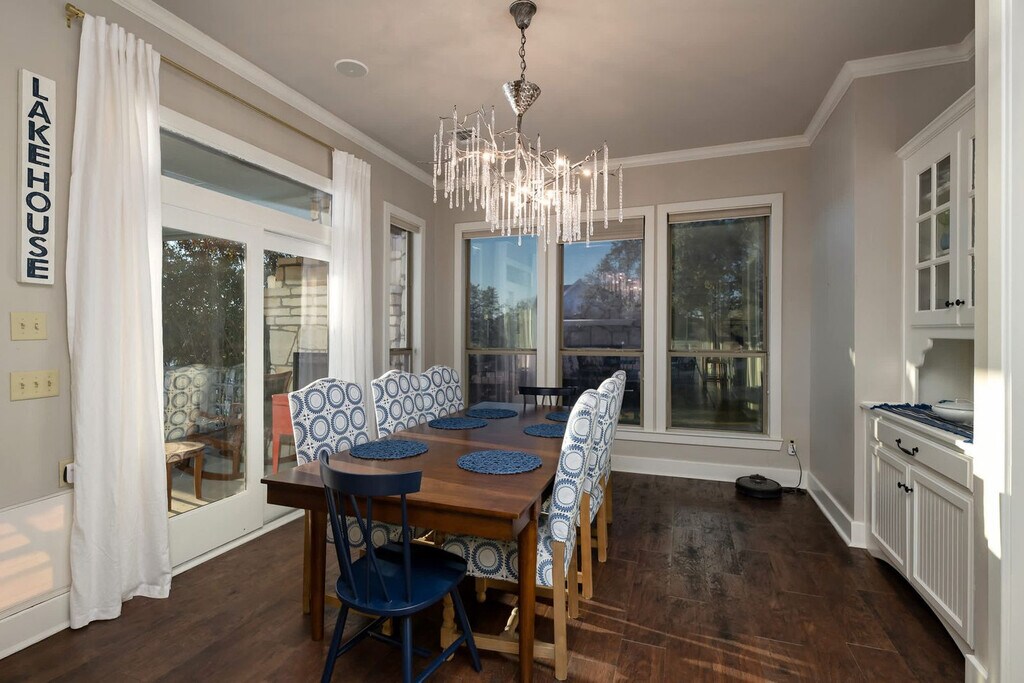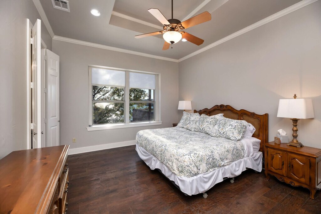 Feel at home in this 7-bedroom luxury home in Chico, offering breathtaking views of Lake Bridgeport. This expansive home comfortably hosts up to 12 guests. This home features an open-concept living area, a fully stocked kitchen with high-end appliances and a large island with high seating, a large refrigerator, and ample cabinetry. Enjoy the indoor fireplace, smart TV, and large plush sofa. For outdoor enjoyment, there is a deck with amazing views, a fire pit, two grills, a dock, and an expansive lawn. A family-friendly set-up includes a high chair and pack n play. Located in a friendly Chico neighborhood, this home combines convenience with unbeatable lakefront living. Chico Downtown Square and Pablo's Mexican Restaurant are a short drive away. North Side Marina on Lake Bridgeport offers boating, fishing, and lakeside activities. Dogs are not allowed in the property. No parties are allowed, and violations may result in immediate termination of the stay. Guests must be 21 years or older to book this property. Check-in is at 4pm and check-out is at 10am. [SI]